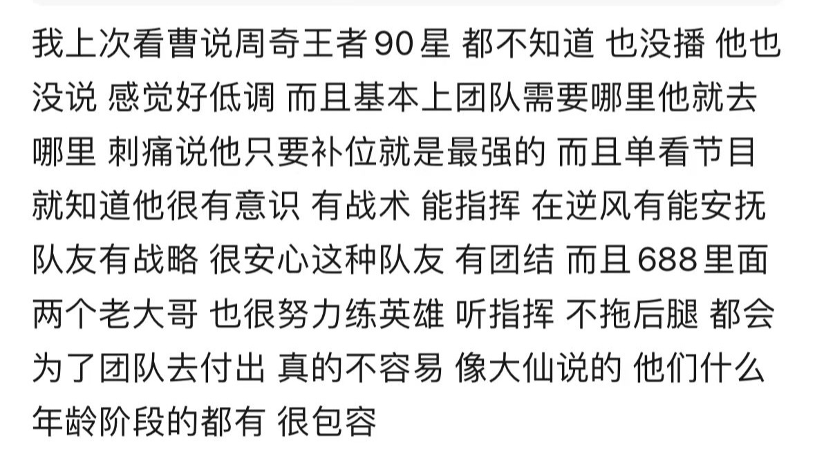 玩过游戏的都懂辅助的重要性,尤其碰上一个会指挥的辅助有多幸福。。。不抢经济,随时游走,关注全局战况,及时出现在需要帮助的队友身边,给你满满的安全感。最最重要的是还会探草占视野,报点支援!完全是多边形辅助啊!既能大胆开团进攻,也能保队友良好输出环境。全程都沉得住气,辅助的事都干了,不是辅助的事也能干都干了,哪里需要他他就去哪里。。而且看节目说他王者90星 omg 怪不得如此有意识,当辅助也在及时关注各个位置的战况,还能做到很精准的切换指挥…太牛了。。给我自己也接这样的辅助🫳🏻