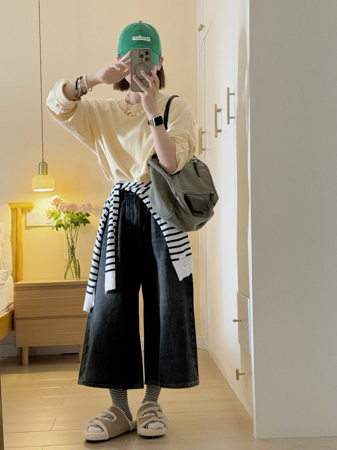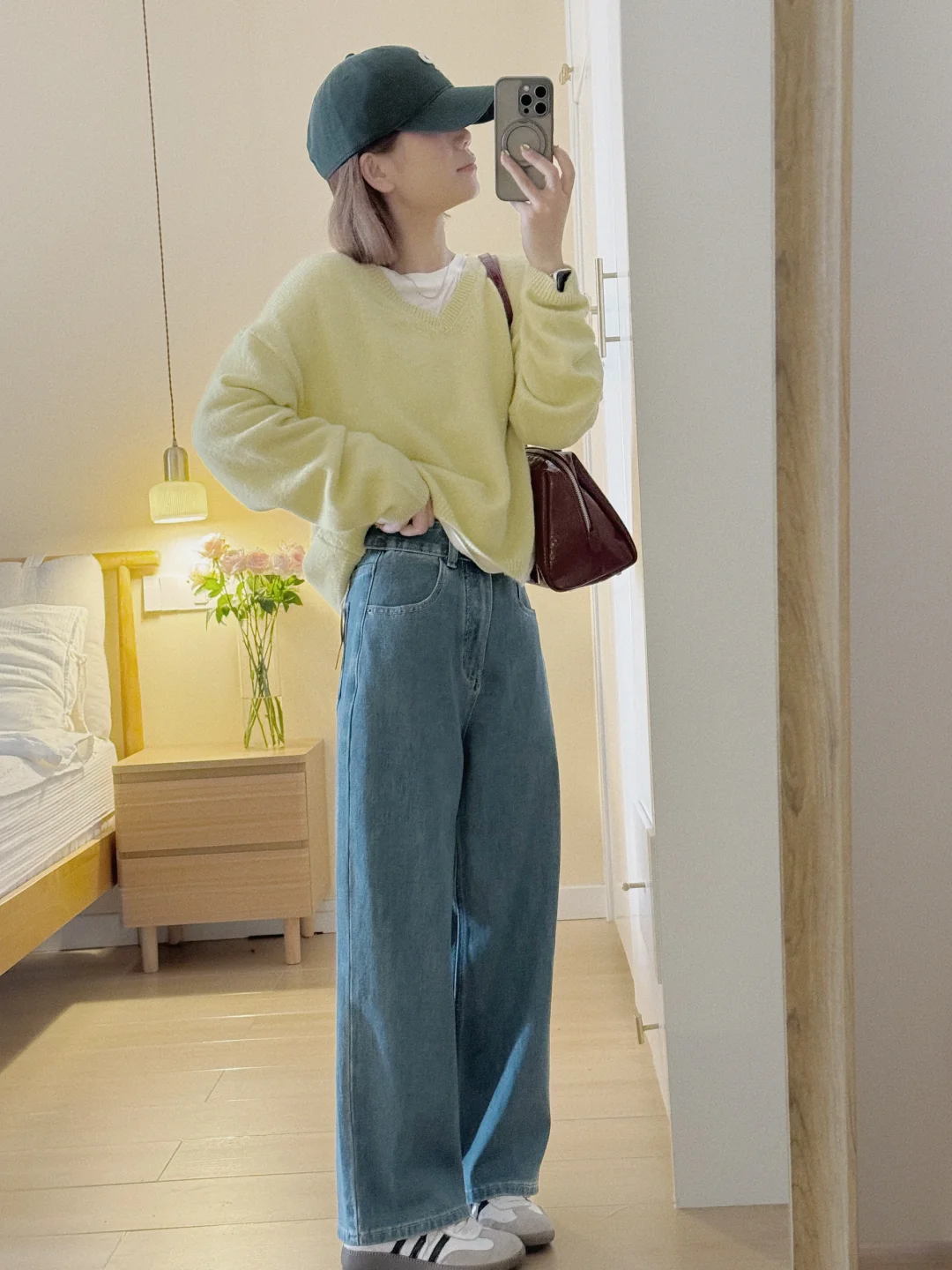 夏天在自然公园里,穿白色背心搭配黄色牛仔裤,妥妥就是甜美少女本女。白色背心清爽又