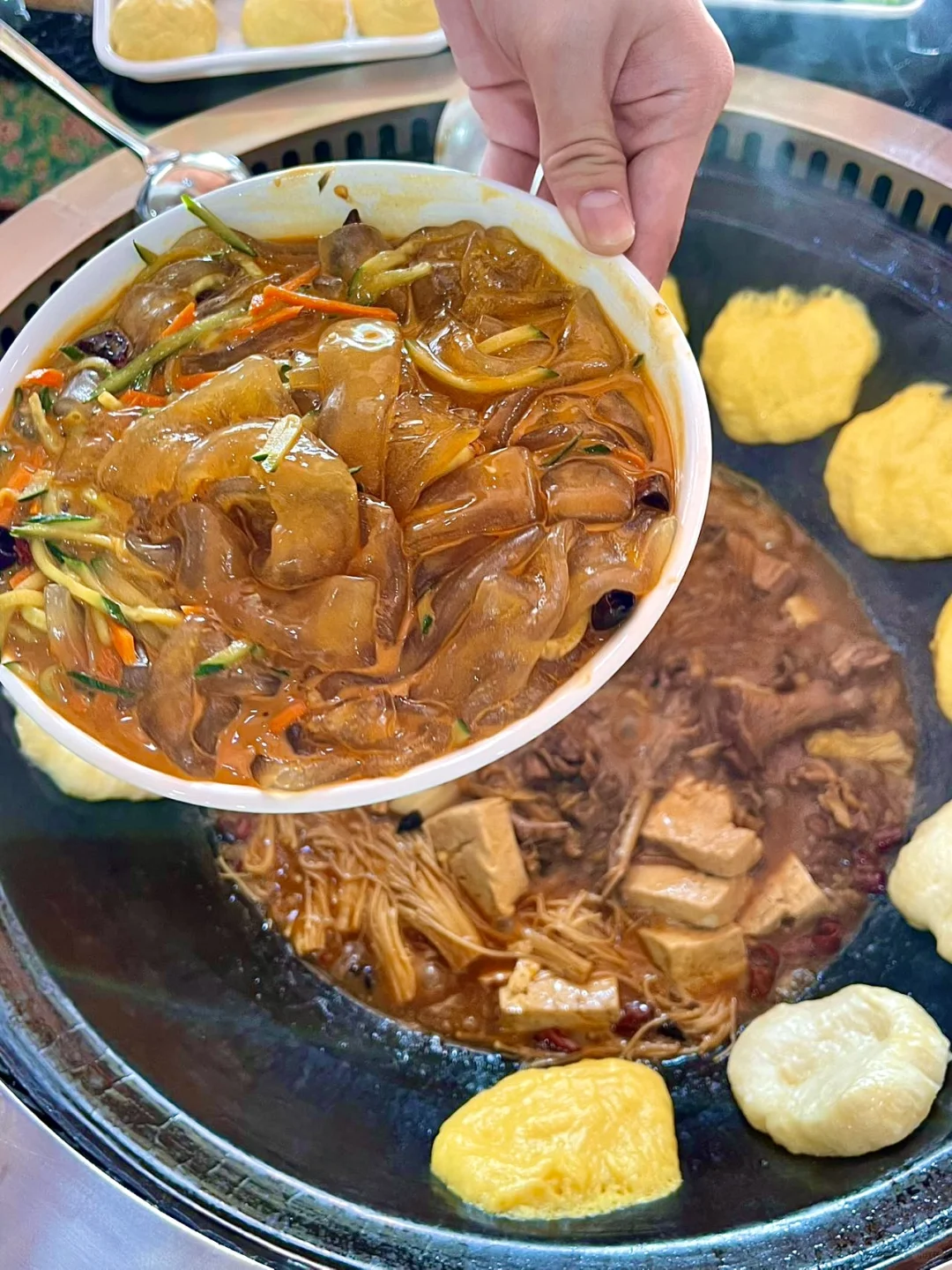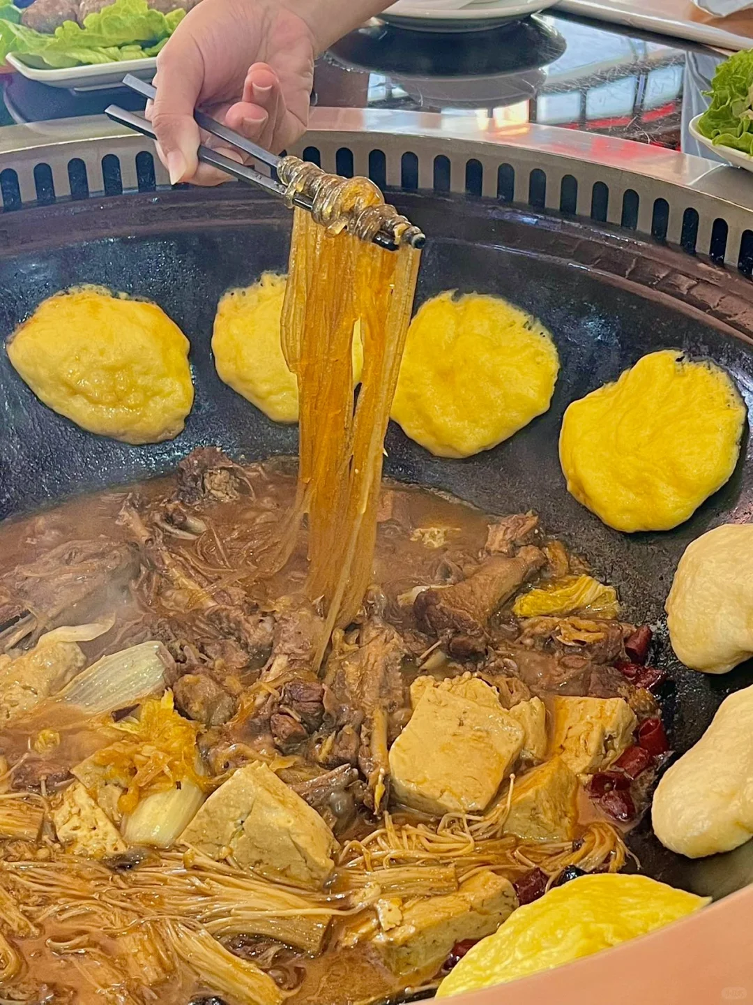 又到了吃铁锅炖的季节,不得不拿出我私藏了多年的这家店!它家开了十多年了,是东阳首家铁锅炖,也是我在东阳吃到过蕞正宗的东北铁锅炖!家人和朋友都觉得它家味道很正宗!现在的天气逐渐变冷,没有什么比一锅热气腾腾的铁锅炖更能暖人心👍 - 几个人围着铁锅等待着开盖那一刻真是香迷糊了!大块的排骨、鲜嫩的鸡肉、肥美的鹅肉,在铁锅中慢慢炖煮,搭配自己喜欢的配菜,瞬间香气四溢🤤再贴上我坠爱的面饼,蘸上汤汁,谁懂这一口的含金量…..