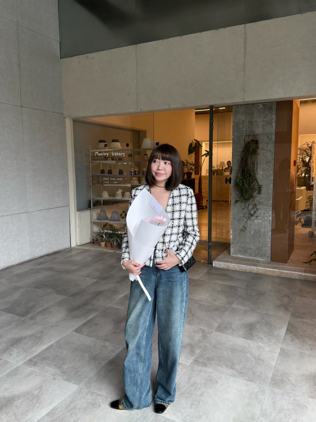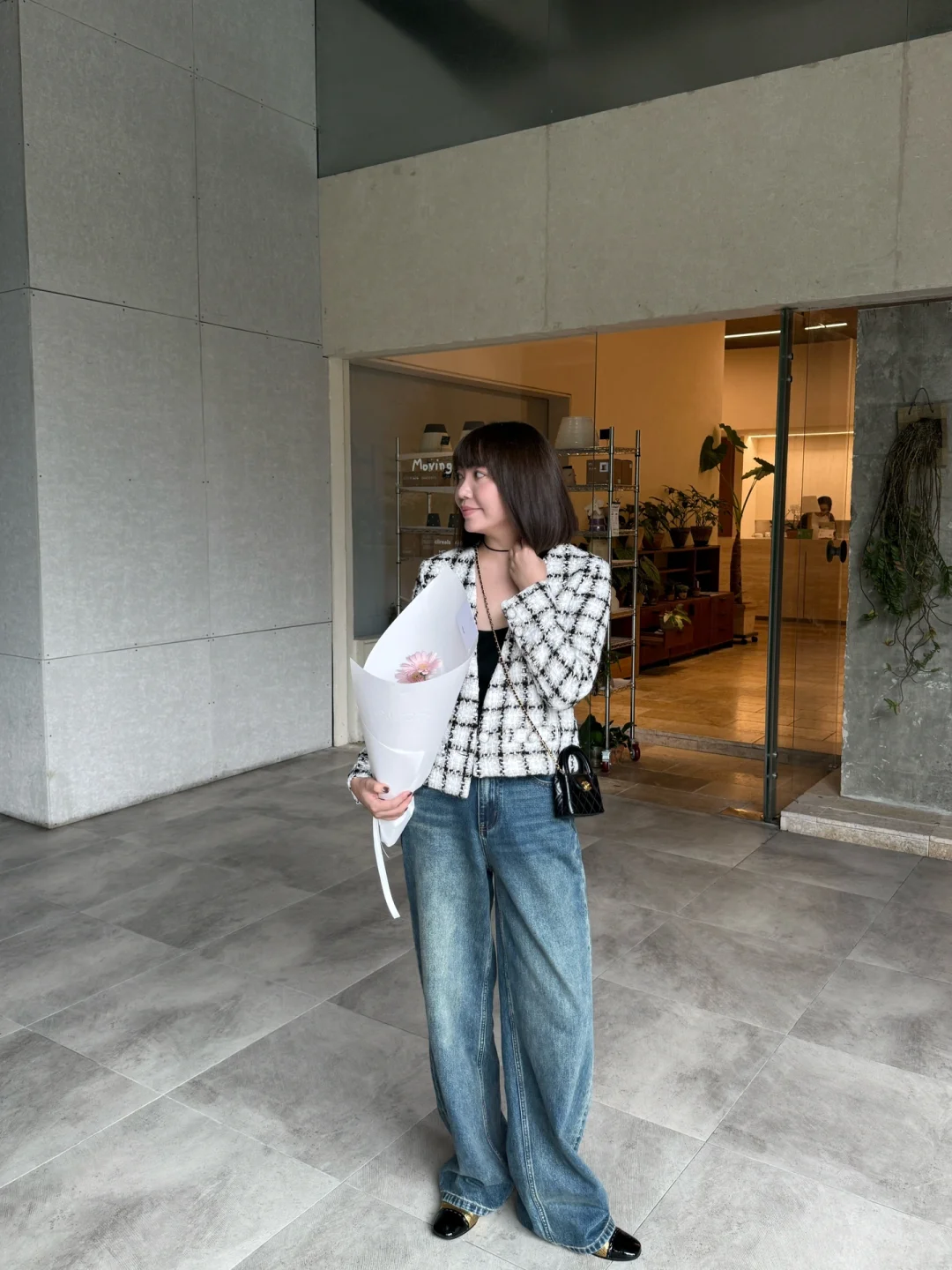 1. 体型:身材高挑,曲线玲珑,整体身形匀称且线条优美,高腰喇叭裤更凸显出腿部与