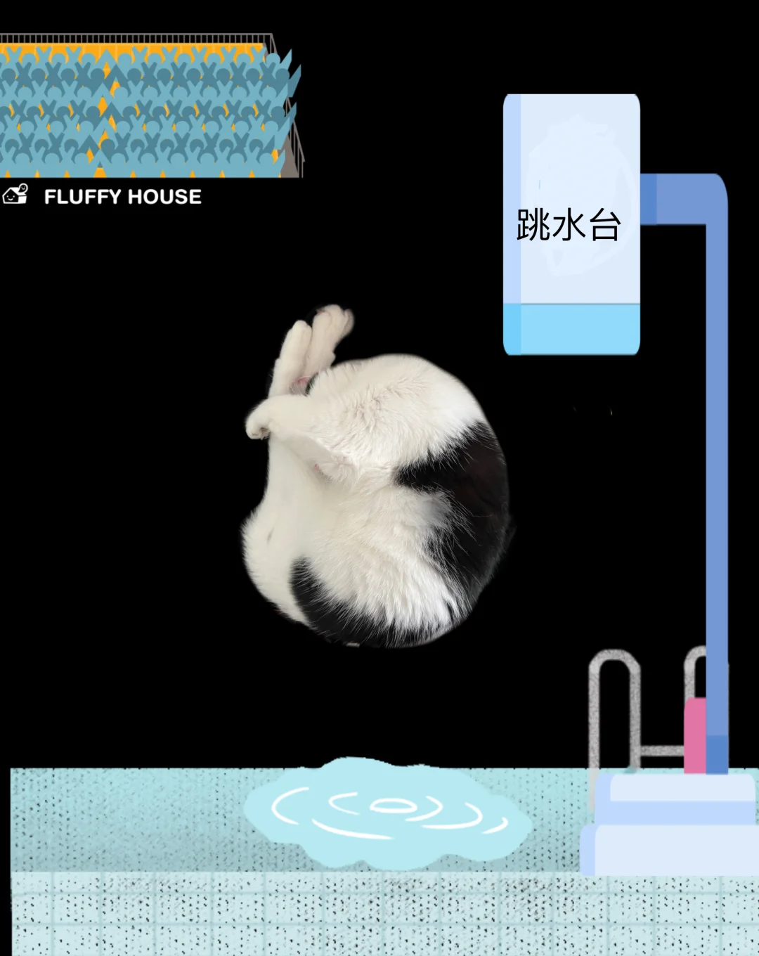小猫偷老奶奶泳衣练习向后翻腾三周半抱膝