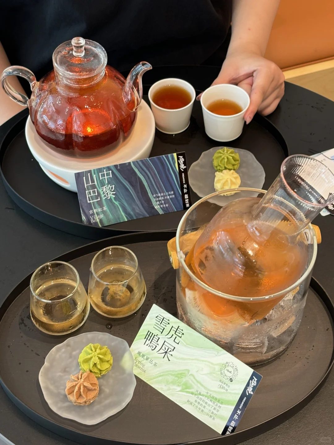 杭州奶茶之光开来湖州了!!! 每一杯都好惊艳!还有工夫茶配茶点!! 我坠爱雪虎鸭屎,巨巨巨清爽~ 茶艺师现泡的茶 冷热饮都好好喝!