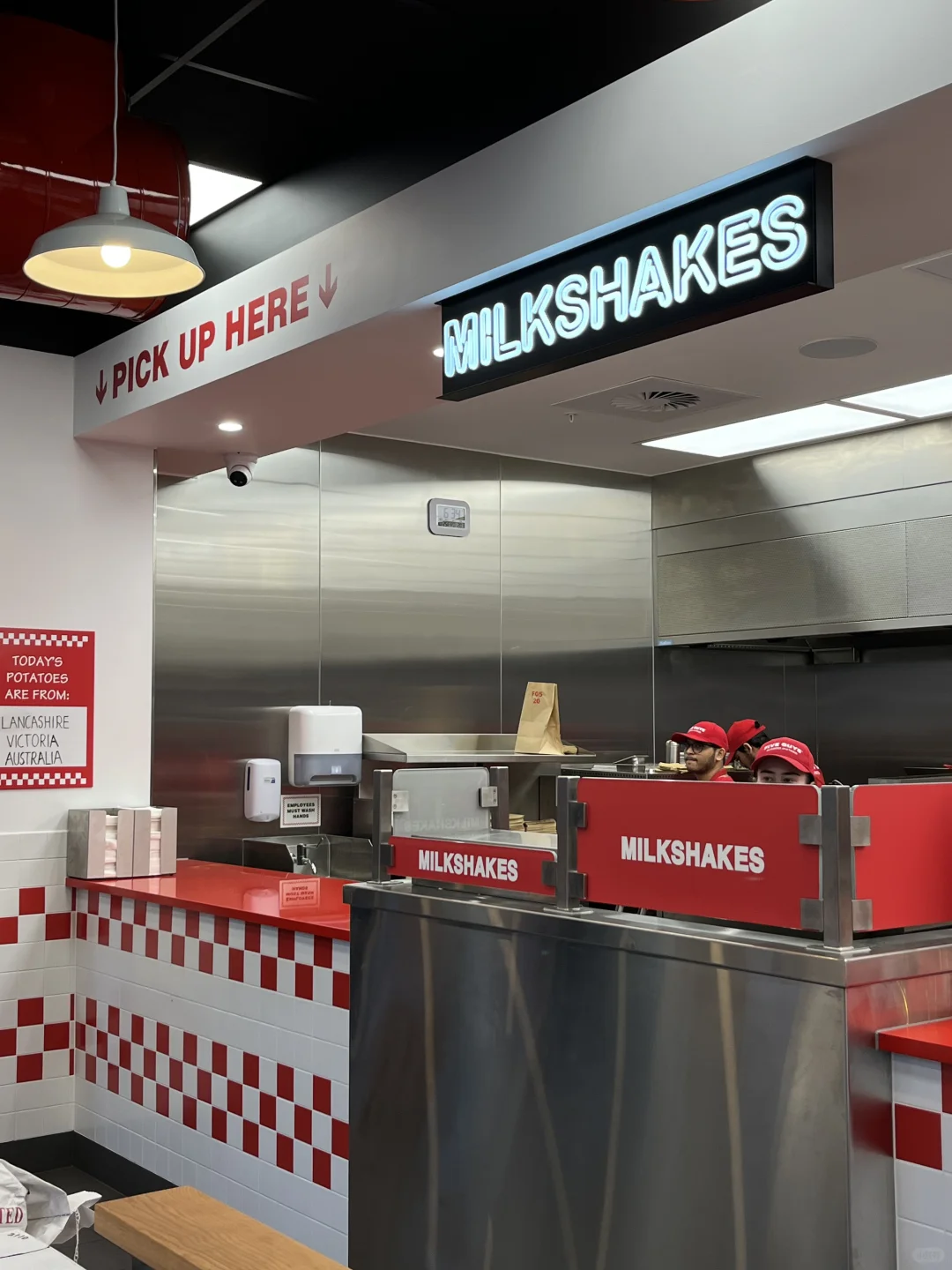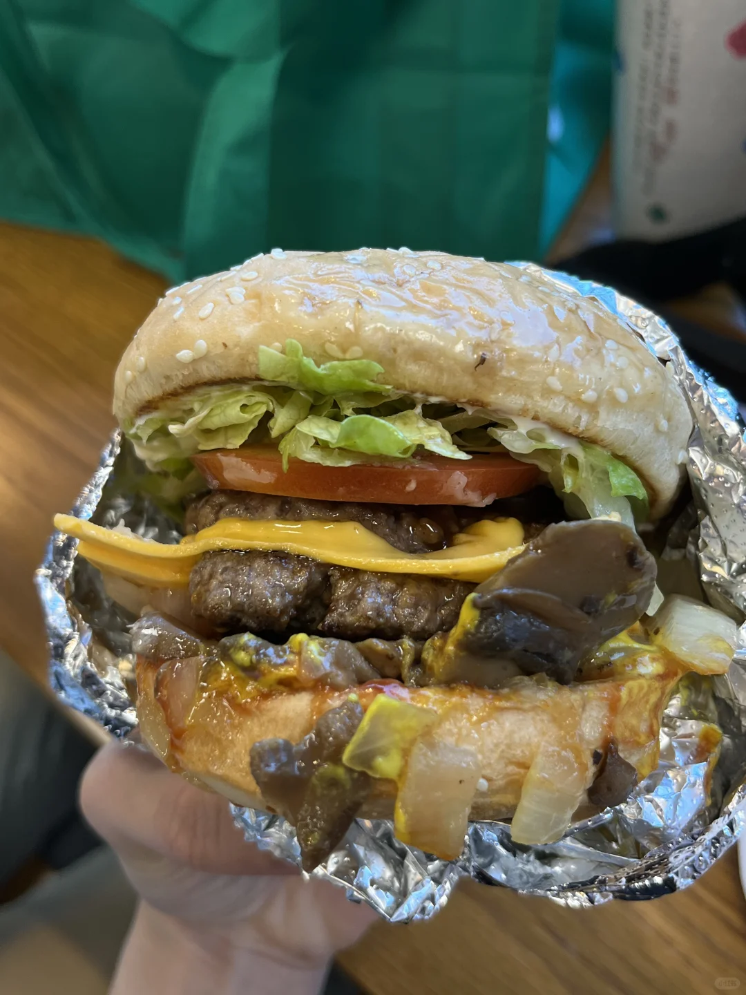 终于在qv开一家啦! 感觉好多人啊 我就点了个ble patty bacon cheeseburger topping点了all the way加steak sauce 但好像没给bacon 我真的哭死 但是话说我觉得蛮好吃的 很香 缺点是有点小贵 刷其他贴子看他们薯条和milkshake都不错 可以尝尝