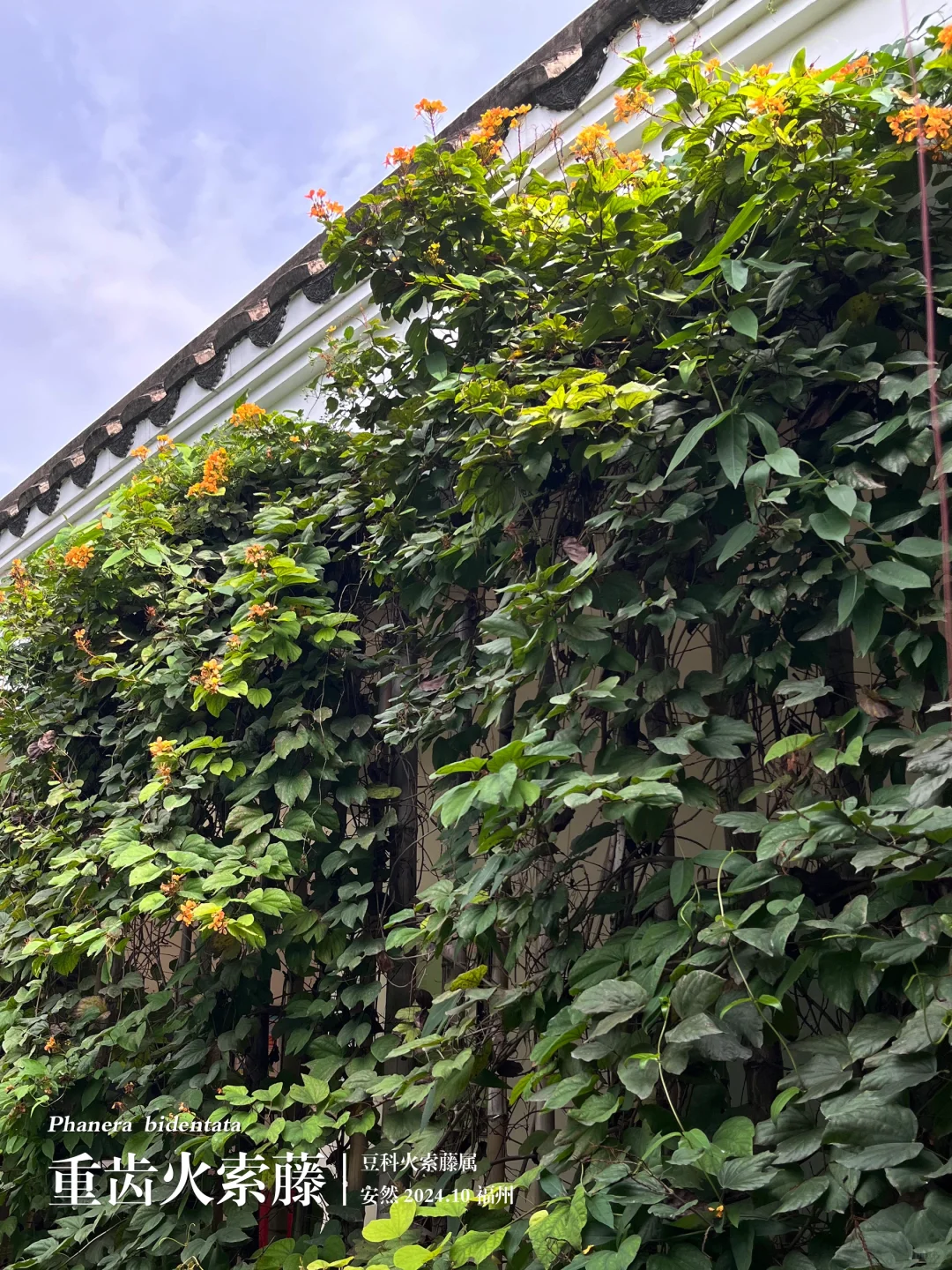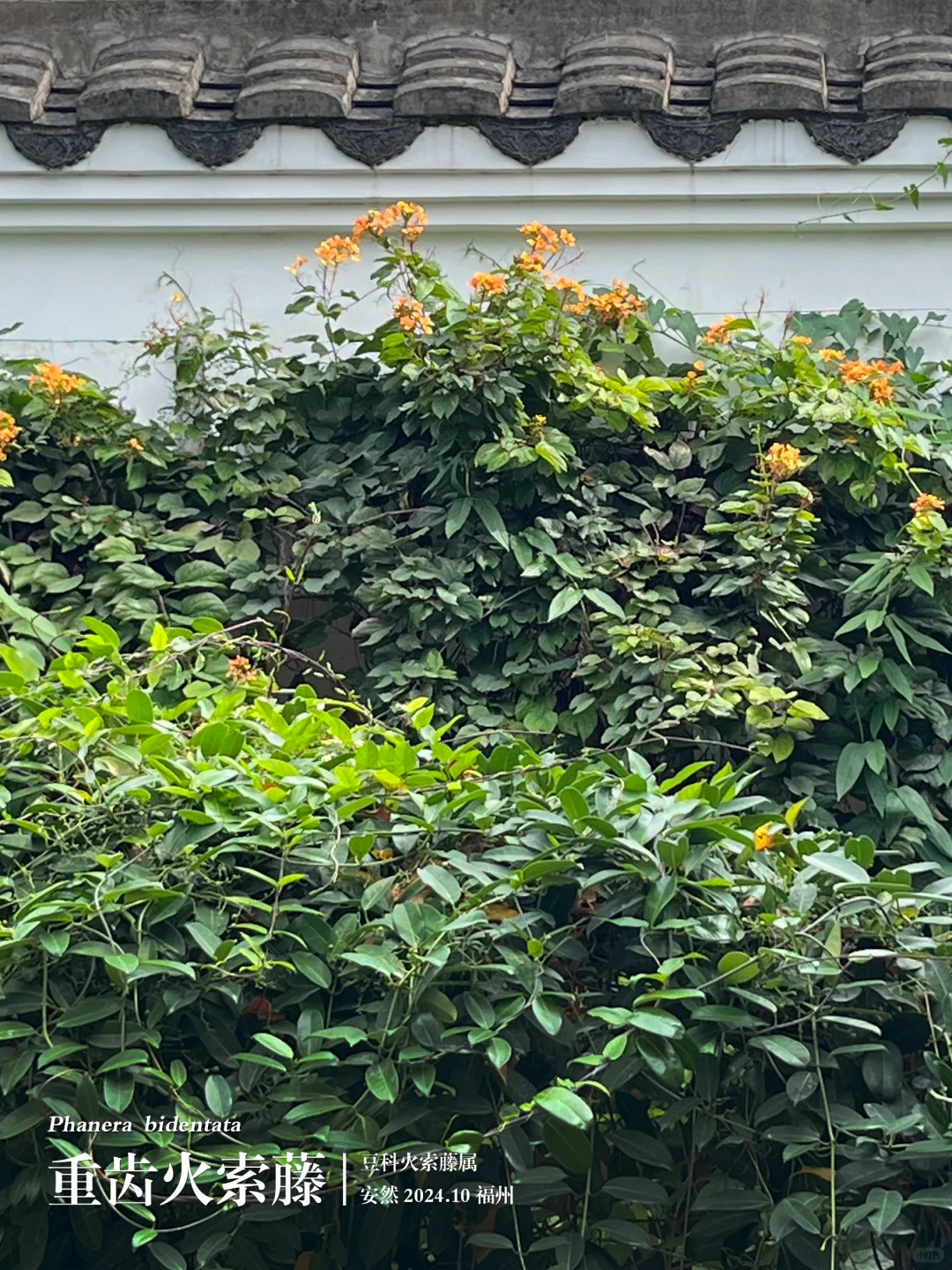 十月中的某天,我看了群友LD的朋友圈,瞬间就被一张酷似开着橙花的类羊蹄甲植物图吸引。赶紧追问,原来是茶亭公园一株遥赠于西双版纳植物园的藤本羊蹄甲。