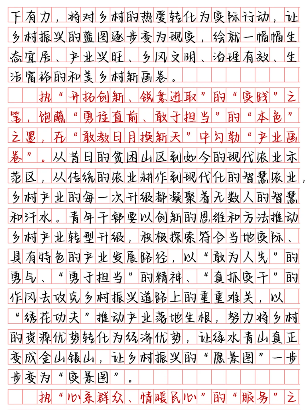 【适用主题】乡村振兴 【论点分析】 执“时不我待、只争朝夕”的“奋进”之笔,饱蘸“砥砺前行、矢志不渝”的“底色”之墨,在“绿水青山带笑颜”中勾勒“振兴画卷”。 执“开拓创新、锐意进取”的“实践”之笔,饱蘸“勇往直前、敢于担当”的“本色”之墨,在“敢教日月换新天”中勾勒“产业画卷”。 执“心系群众、情暖民心”的“服务”之笔,饱蘸“人民至上、无私奉献”的“成色”之墨,在“一枝一叶总关情”中勾勒“民生画卷”。