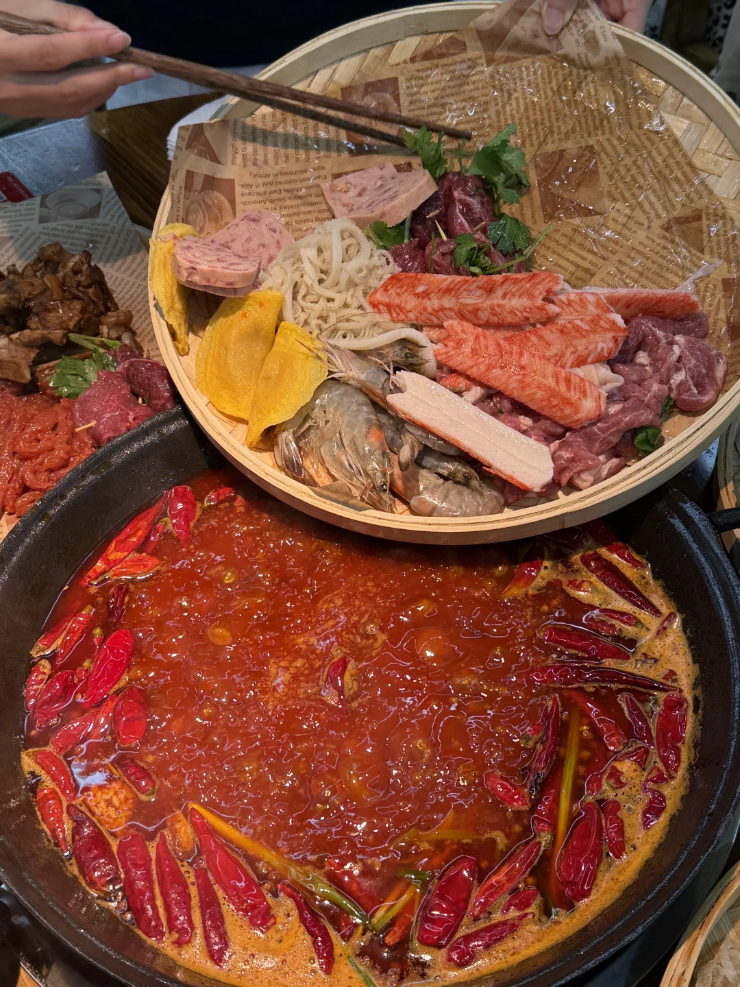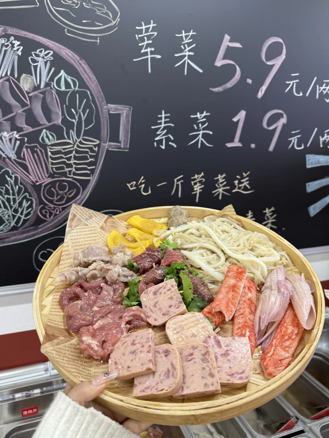 南京新街口新开的菜市场火锅,菜品可以自选,锅底不要钱,选荤菜送蔬菜🥬,真的巨划算!!