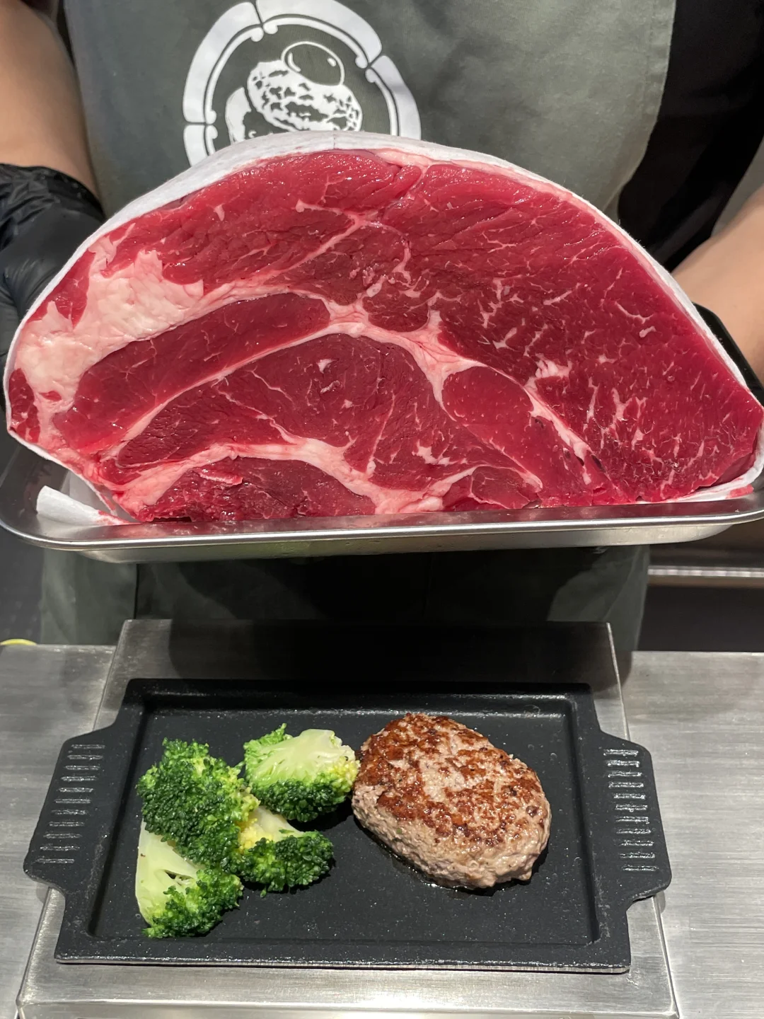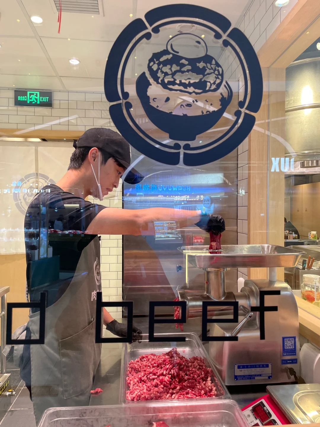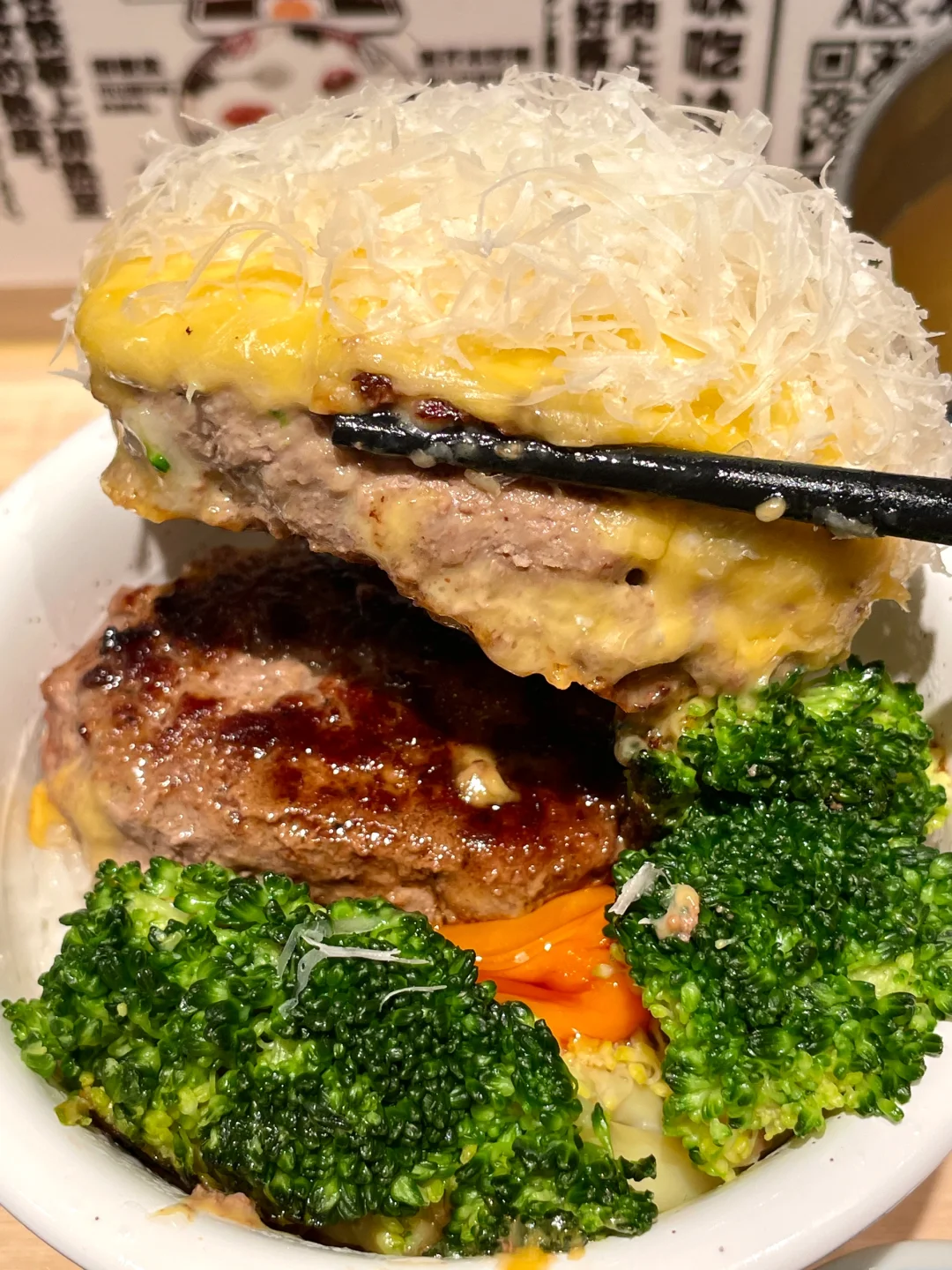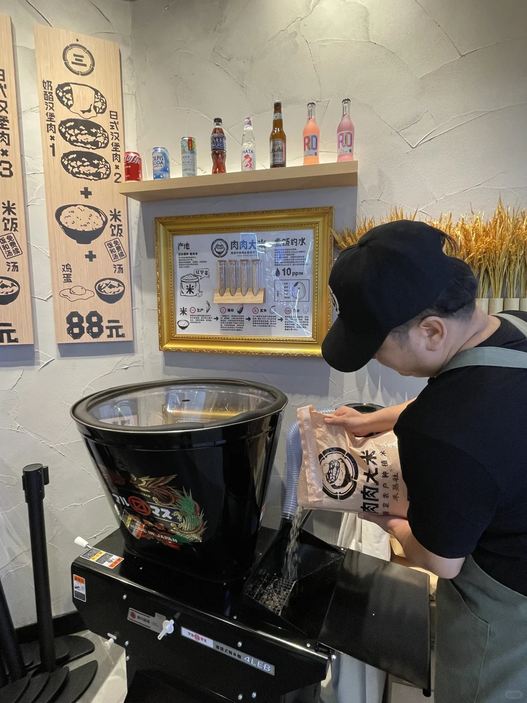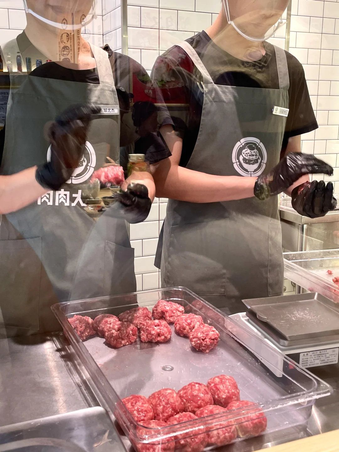心心念念的肉肉大米终于开来家门口了! 新鲜肉糜经过捶打制成的汉堡肉 厚实又紧致,肉汁丰富!!