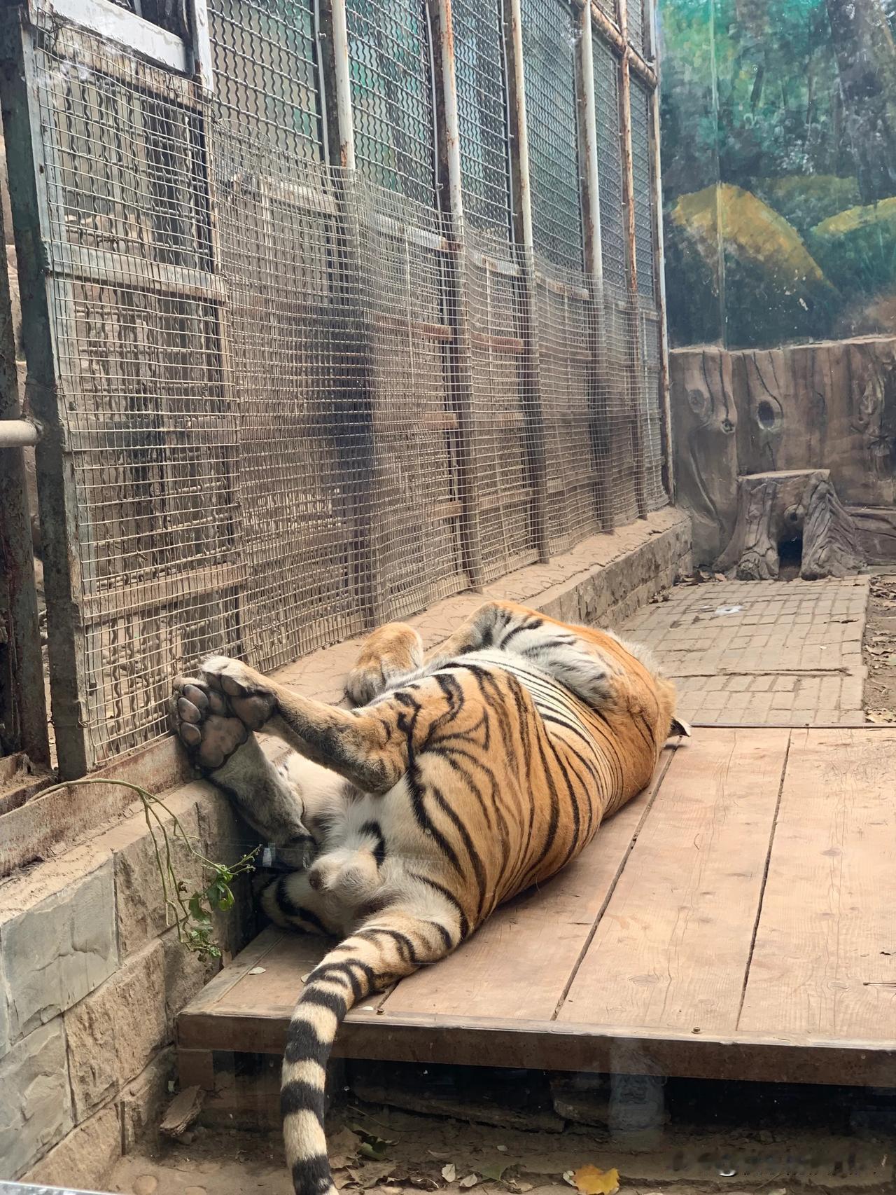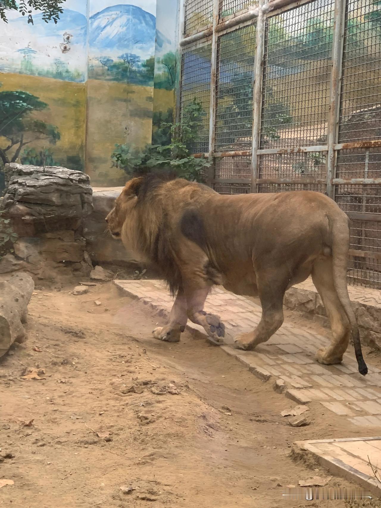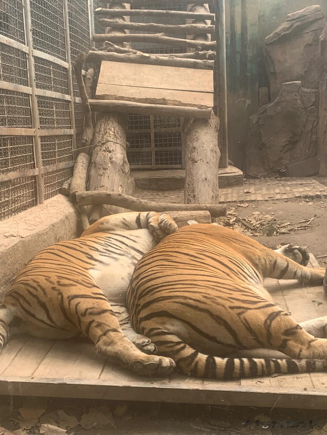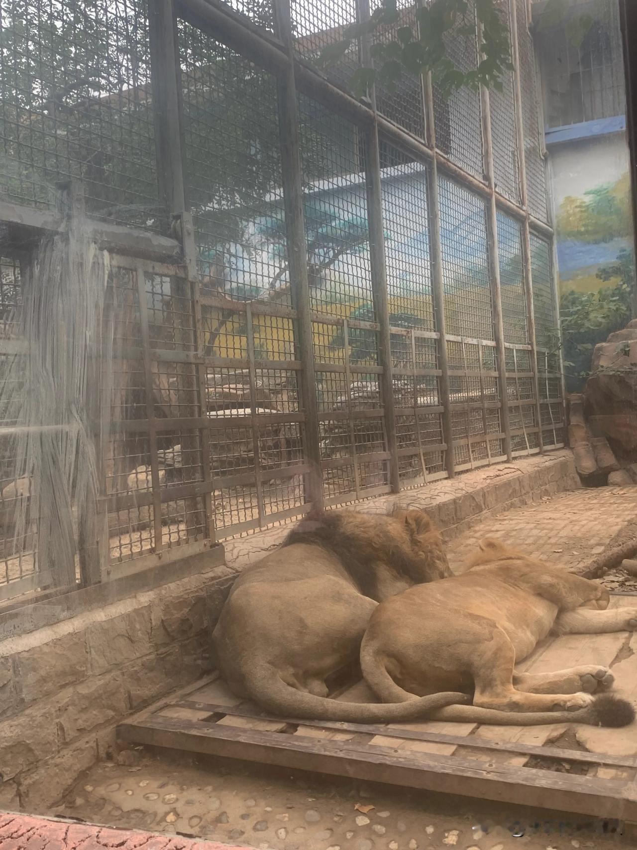 #旅行随手拍#山东济南动物园里的狮虎乐园:狮子、老虎在睡觉,只有一只在溜达!