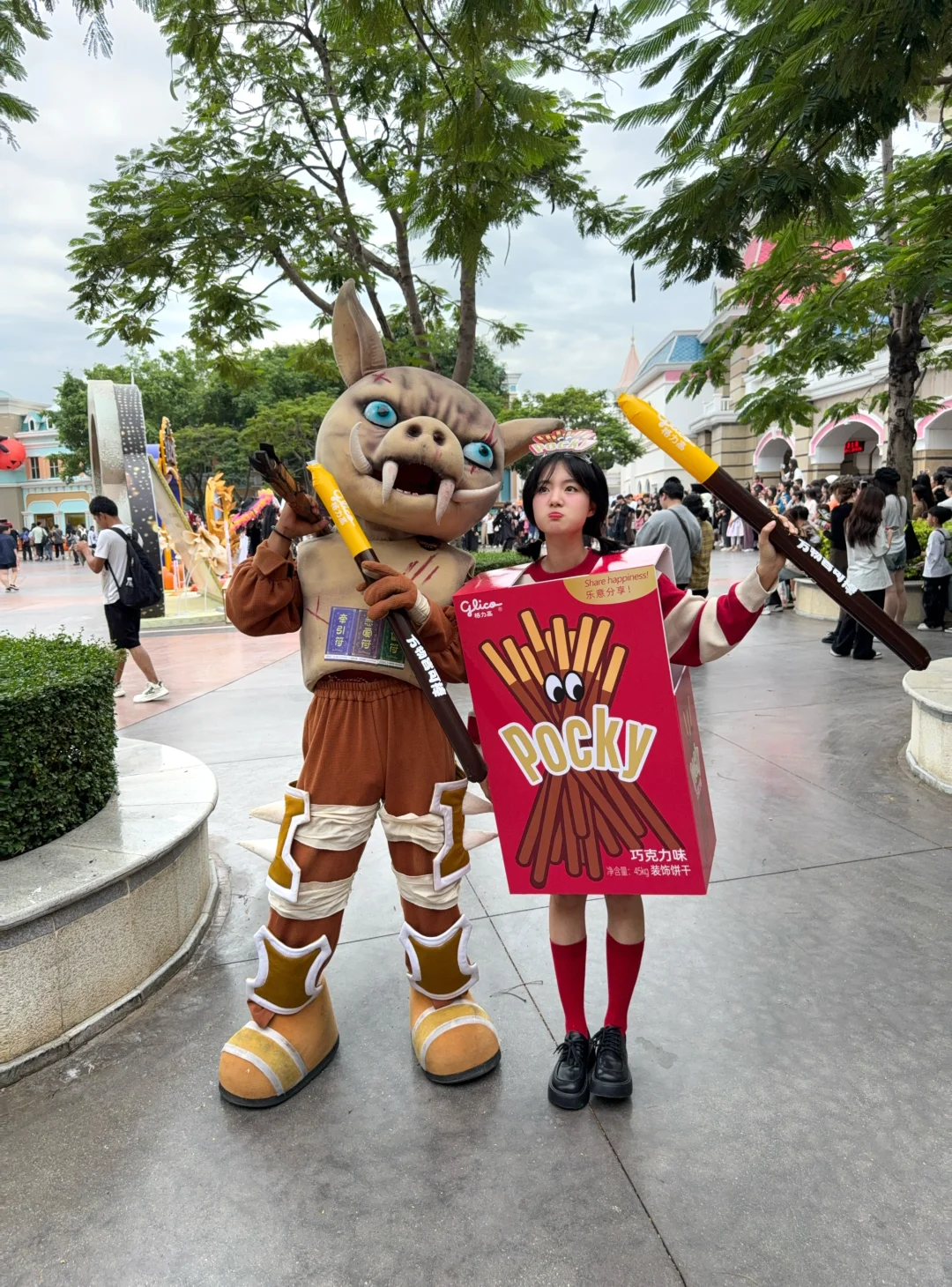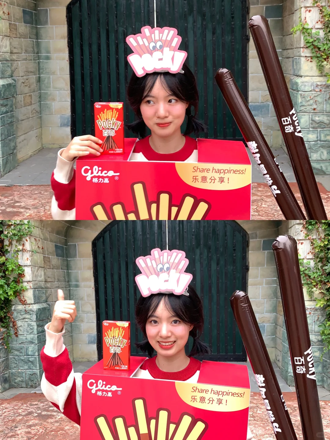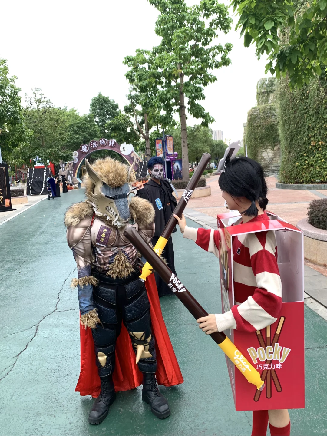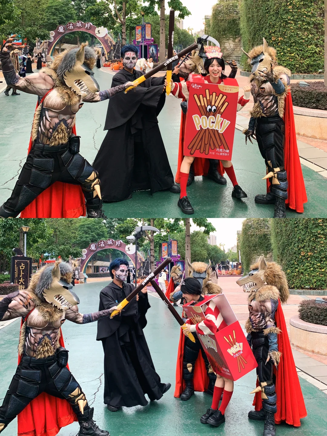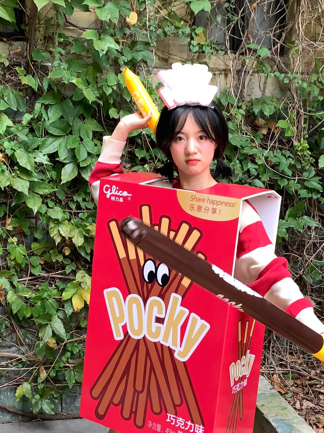 自己用kt板diy了百奇巧克力饼干盒🍫 万圣节穿去乐园拍照玩,简直是回头率满满😭!! NPC都好热情陪我拍照~