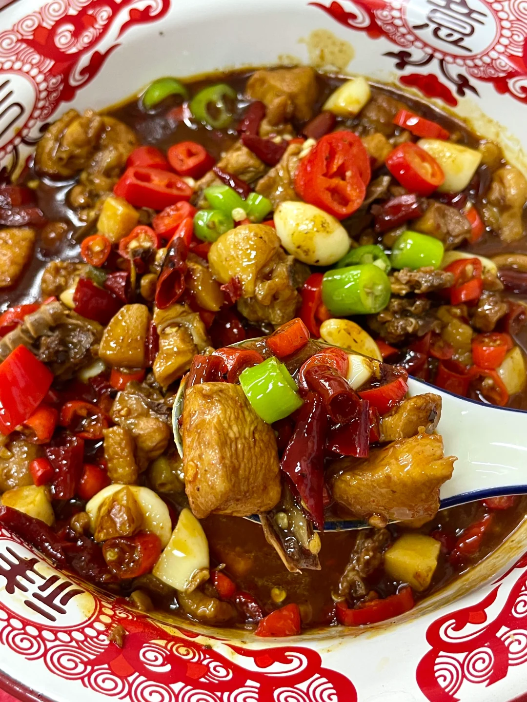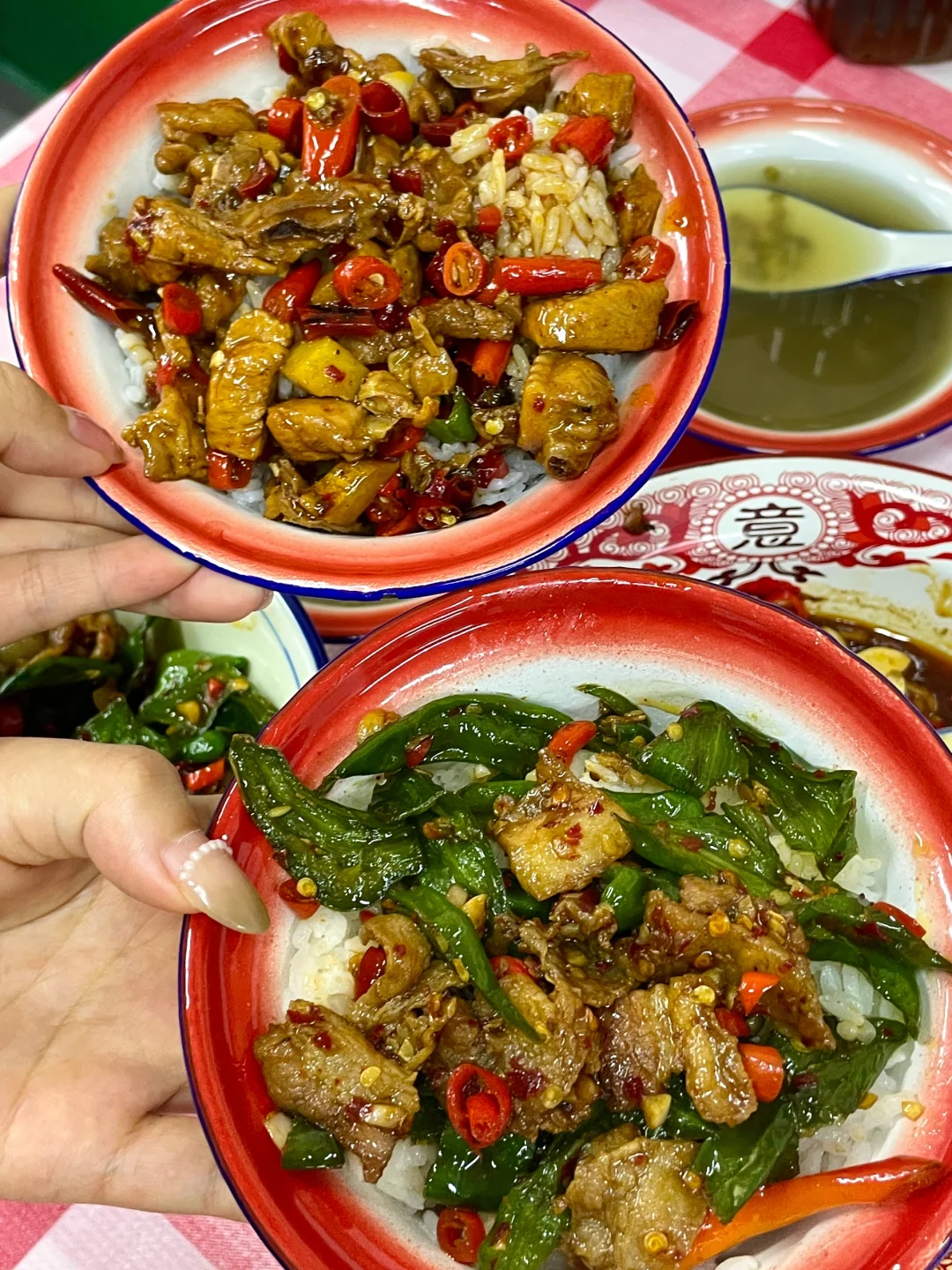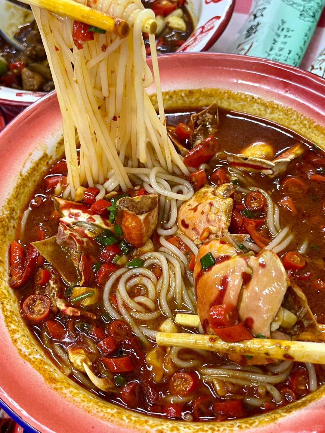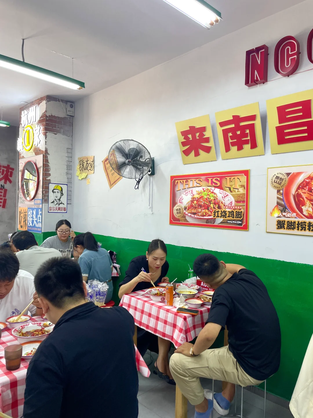 座无虚席!!菜品都是猛火现炒,太下饭了😭一顿我炫三碗米饭!! 蟹脚捞粉真的太辣太好吃了!蟹脚里的蟹肉很足! 爆辣碎碎鸡🐔鸡肉香辣鲜嫩很下饭! 老南昌白糖糕酥脆香甜又解辣,记得趁热吃!