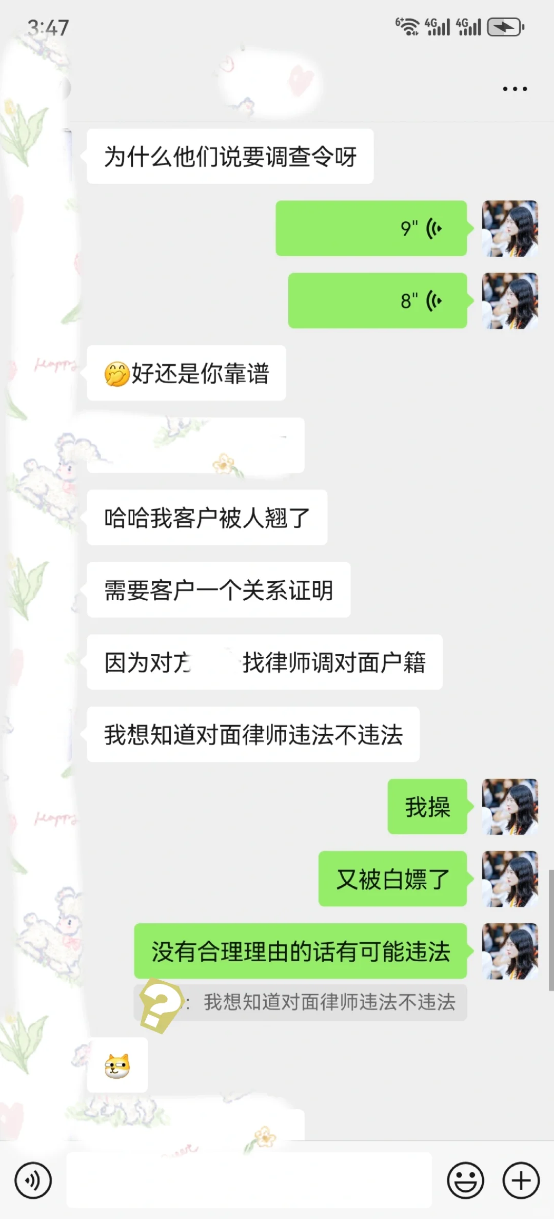 🤗这工作挺有意思的,见识了人类的多样性,白嫖一次两次可以,白嫖三次以上普通朋友都不想做了,律师本人的脾气也被磨得越来越好了