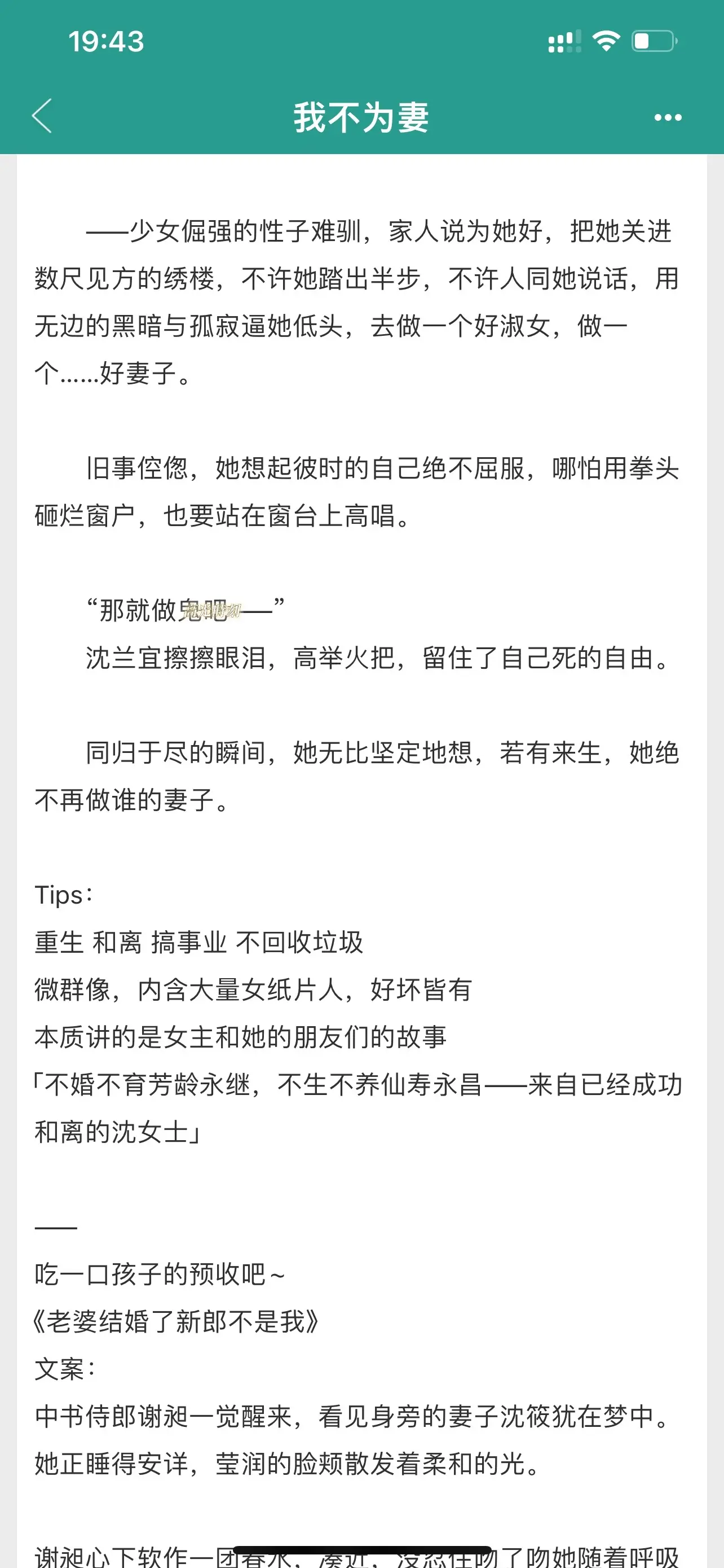 重生文。我不为妻,“旧事倥偬,她想起彼时的自己绝不屈服,哪怕用拳头砸烂窗户,也要站在窗台上高唱。”