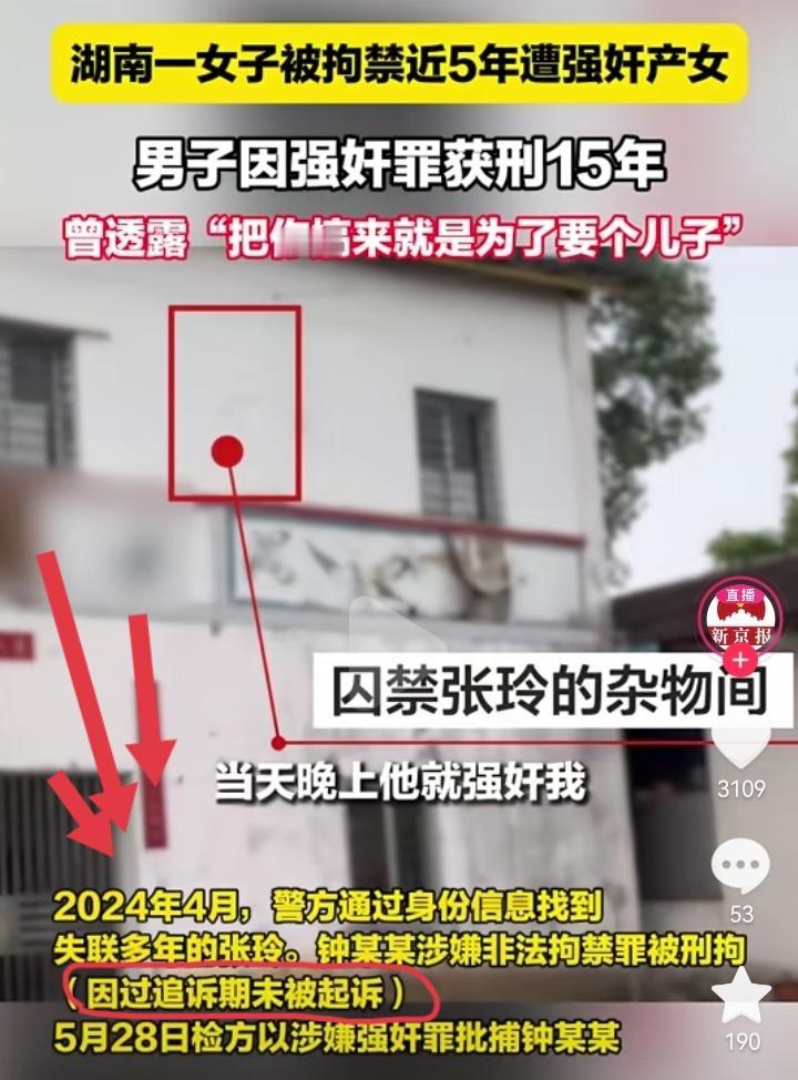 湖南一女大学生毕业后,被同县的男子诱骗到家中拘禁并强奸,长达5年的时间。 然而,该男子却因为过了追诉期没有被起诉非法拘禁罪,我不懂,凭什么。 我仔细看了整篇报道,该名男子一共犯了2个罪名。 1是非法拘禁罪,2是强奸罪。 非法拘禁因为超过了追诉期没有被起诉。 而强奸罪获刑15年。 这我就很不理解了,为什么非法拘禁会有过了追诉期这么一个说法,要是这么说的话, 那把人非法拘禁超过2年,再把他放了,是不是都不用受处罚了? 我不是学法律的,对这一点我很不理解。 我是个平民老百姓,我只知道他毁了这名女大学生的一生,关键是他的女儿和他老婆还支持他这么做,所以,判死刑都便宜他了。 他全家都应该判刑。 古时候的那些酷刑,都应该给他身上上一遍。 大家有什么想说的吗?#男子拘禁女生5年强奸产女获刑#