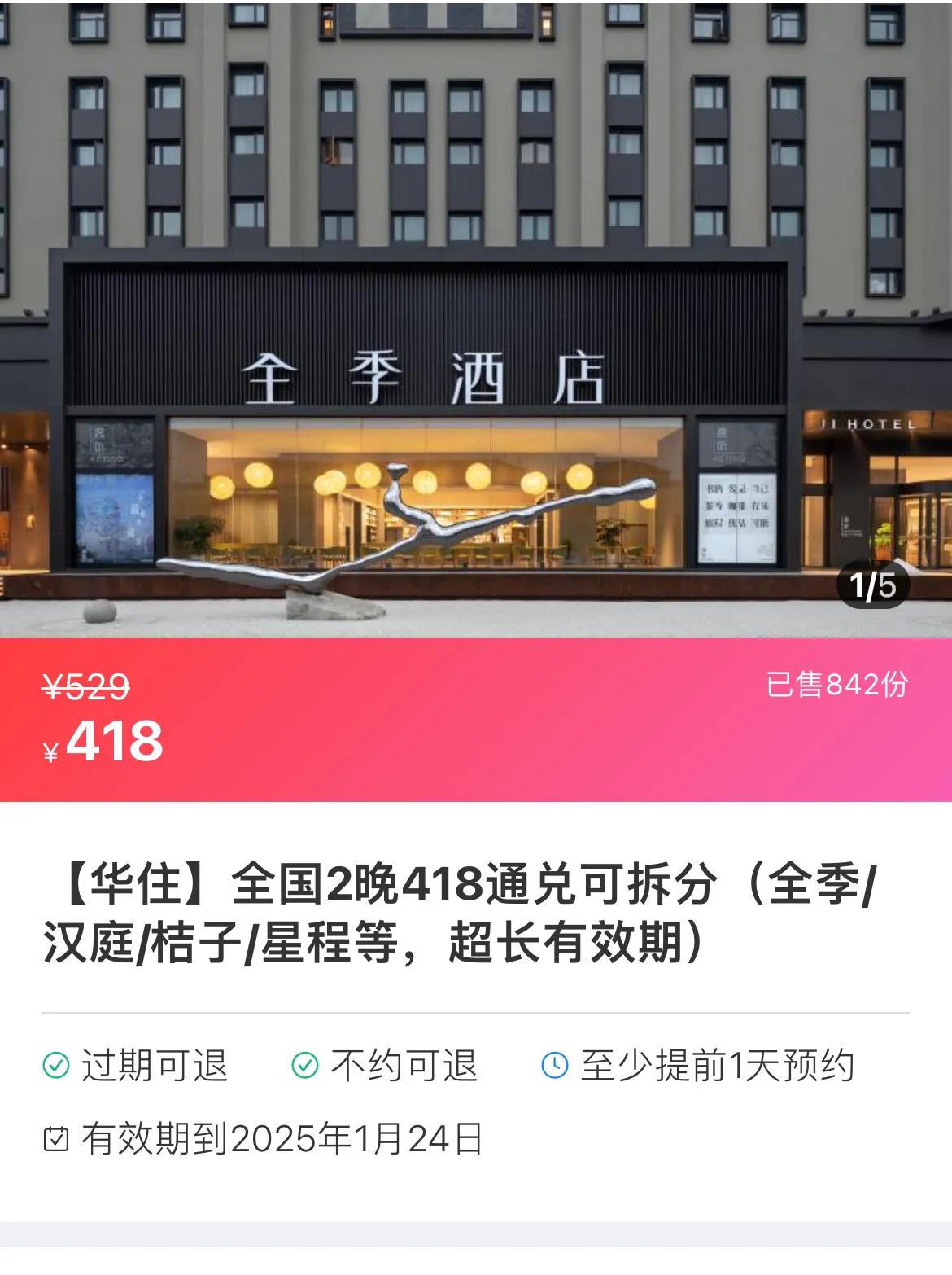 华住会旗下酒店又放出通兑房! 一共有6个档位“278、348、418、498、618、778”,都是全国通用2晚酒店,可拆分! 这次最低的通兑房券还有278住2晚的。也就是说,相当于最低只要139元! 目标是选择一些高级的酒店兑换高级房型(套房或者总统套房),或者兑换节假日的房间! 一些能兑换套房的例子,桔子水晶南京奥体中心中胜国际博览中心酒店。商务套房可以兑换,并且日期基本没有限制。 又或者上海虹桥枢纽美仑酒店的豪华套房。基本上所有日期都能兑换。 不知道哪些合适的可以无脑先囤一波,反正没兑换过可以随便退。 -并且这次活动的入住有效期到2025年的1月24日。 如果你刚需一些节假日原本价格就比较高的高级房型(例如家庭房、或者套房)的话。这些券还是蛮不错的。 怎么定?看最后一张图,或者进主页粉丝群! #酒店# #住酒店# #免费薅羊毛# #旅游攻略# #旅行#