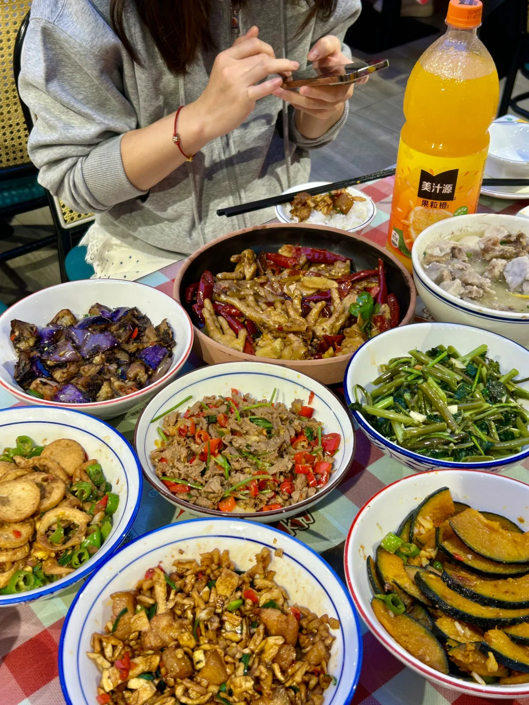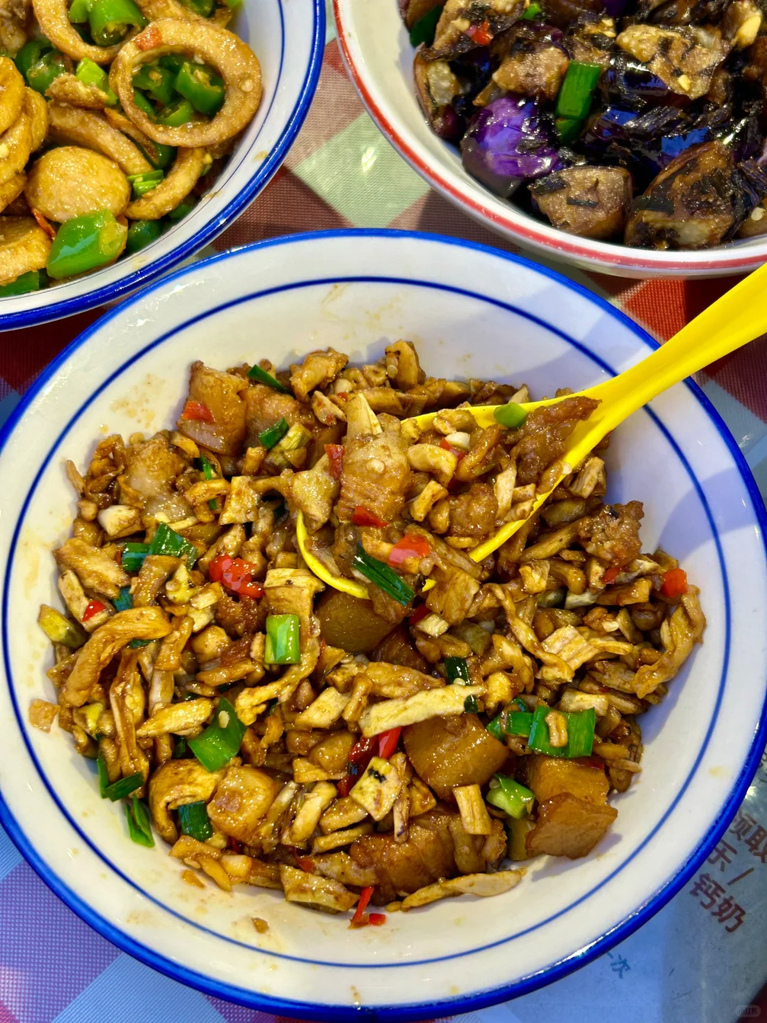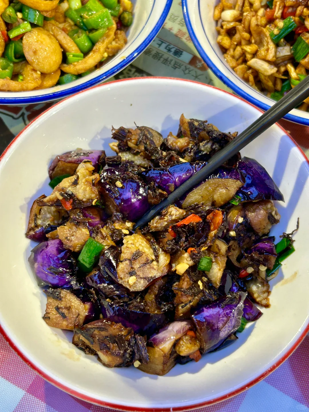 这家店吃了好多次了✨ 每次都吃三碗饭没开玩笑🍚 而且真的好便宜,人均30出头~有的素菜不到10块钱~ ✅梅干菜烧茄子真的超香!茄子太下饭了!香芋蒸排骨也很推荐,香芋的味道融在了排骨里,好绝~🌈姜辣凤爪、小炒黄牛肉闭着眼睛点,每道菜都好吃! ✨店里大部分是长沙土著,推荐来长沙旅游的朋友去这里~