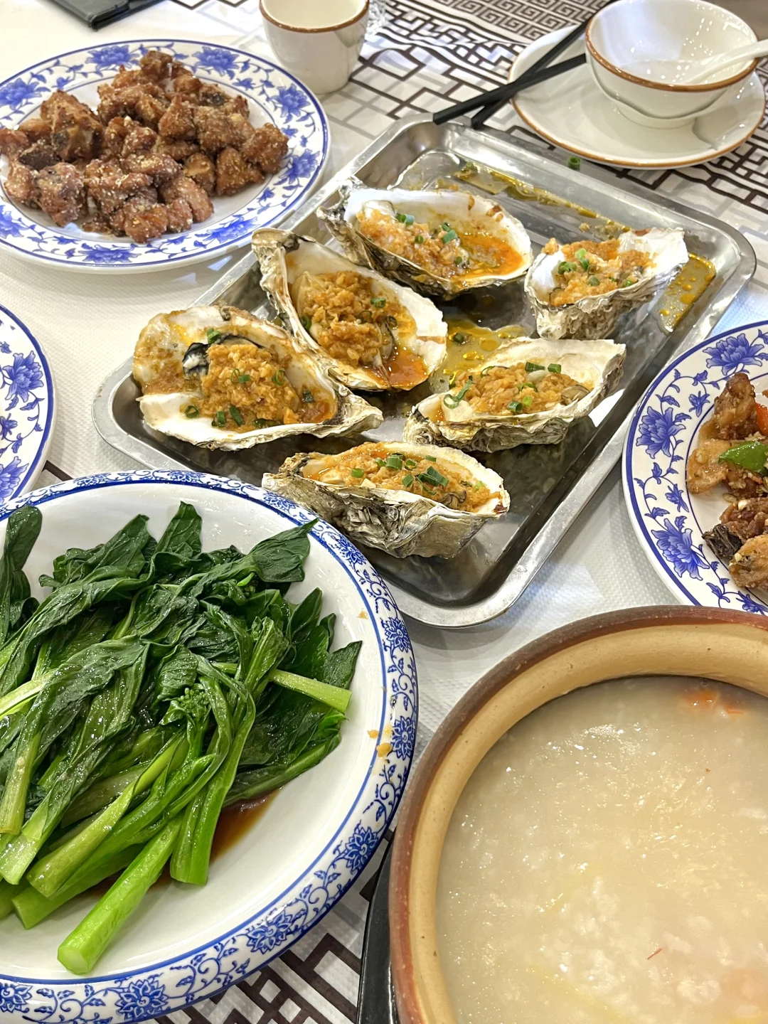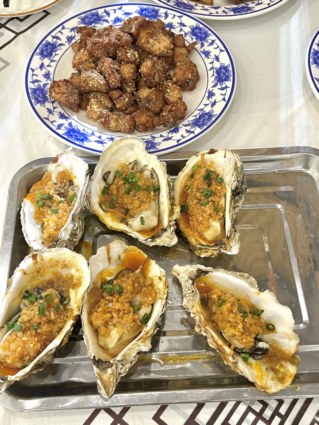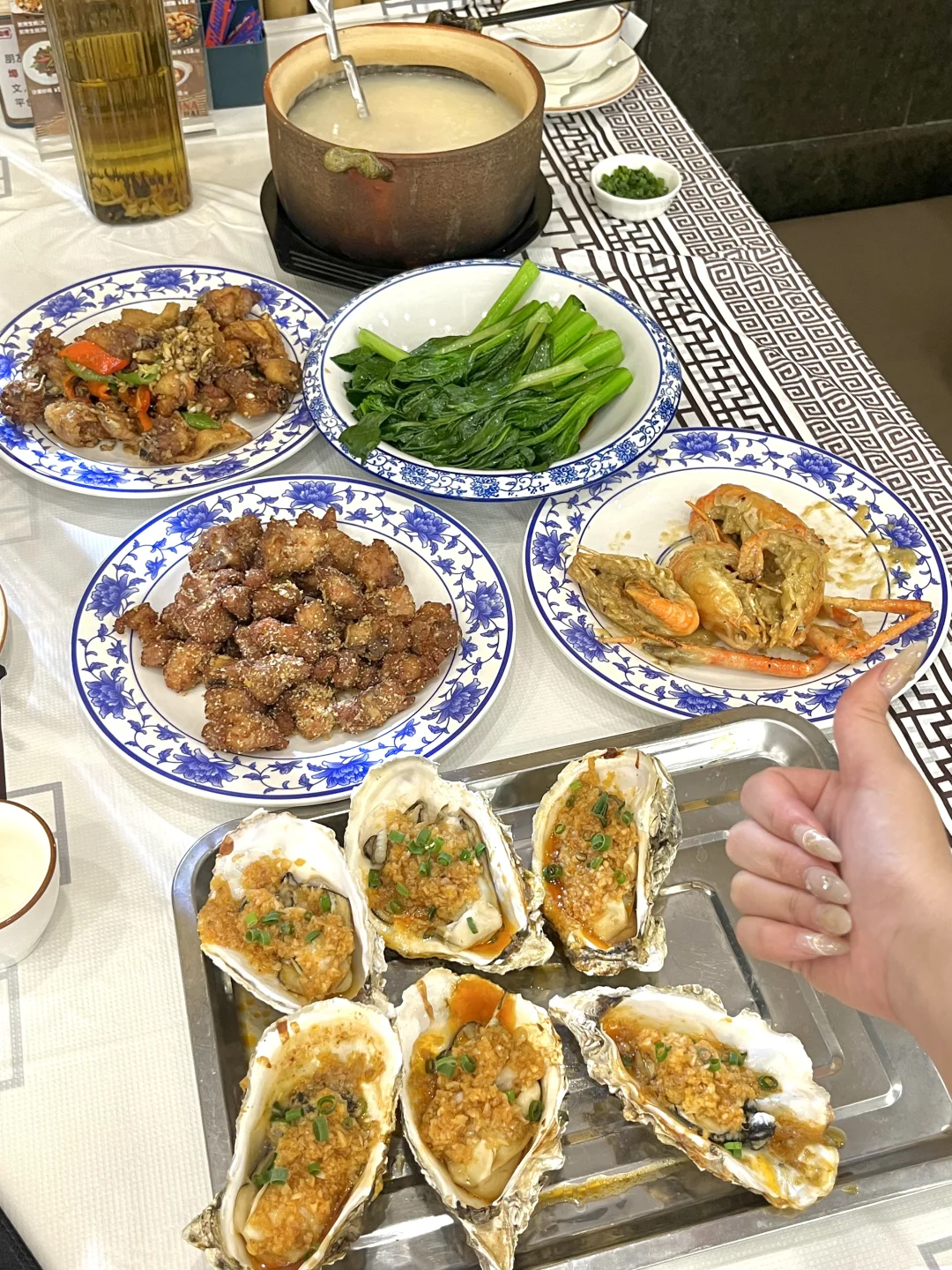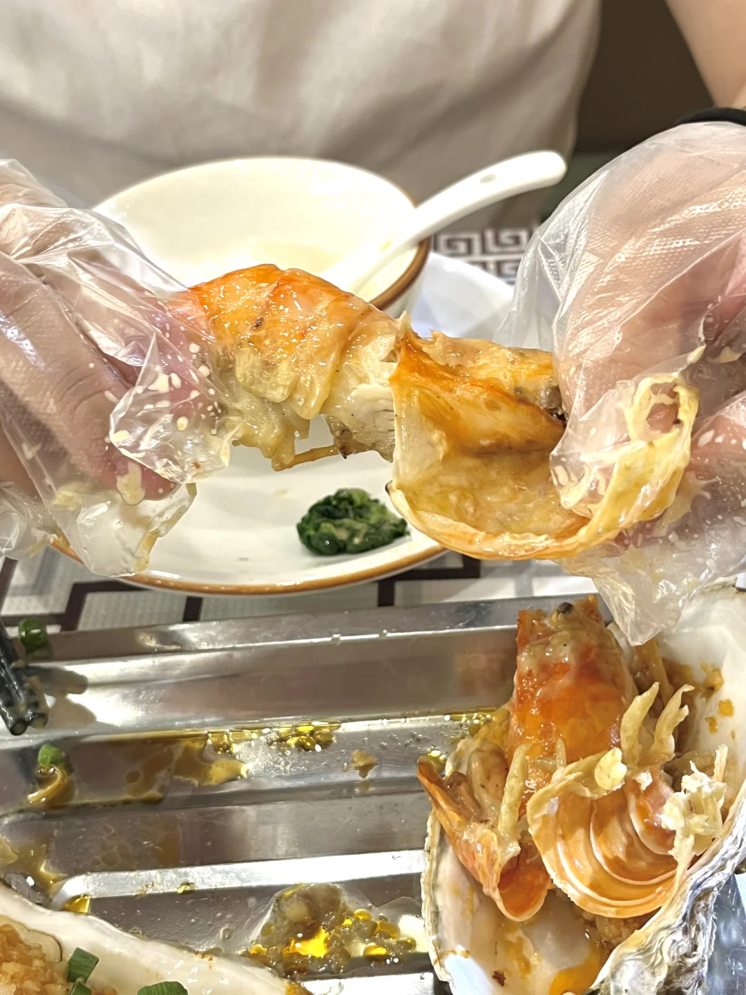. 周末和朋友去唐家这边的 一家大排档吃了宵夜~ 真心觉得好吃,今天推荐给大家‼️ . ✅炭烤大生蚝 生蚝真的很新鲜,炭烤的味道真的绝了,生蚝肉质肥美😭吃起来Q弹爽口!! ✅奶油青芥末罗氏虾 店员推荐这个奶油味的,虾个头真的很大,虾肉也很鲜嫩,总之好吃!! ✅酥脆陈皮排骨 第一次吃到这么脆皮好吃的陈皮排骨!!外皮烤的焦脆,真的很香!!陈皮味道绝了,真的好有特色的菜品😋