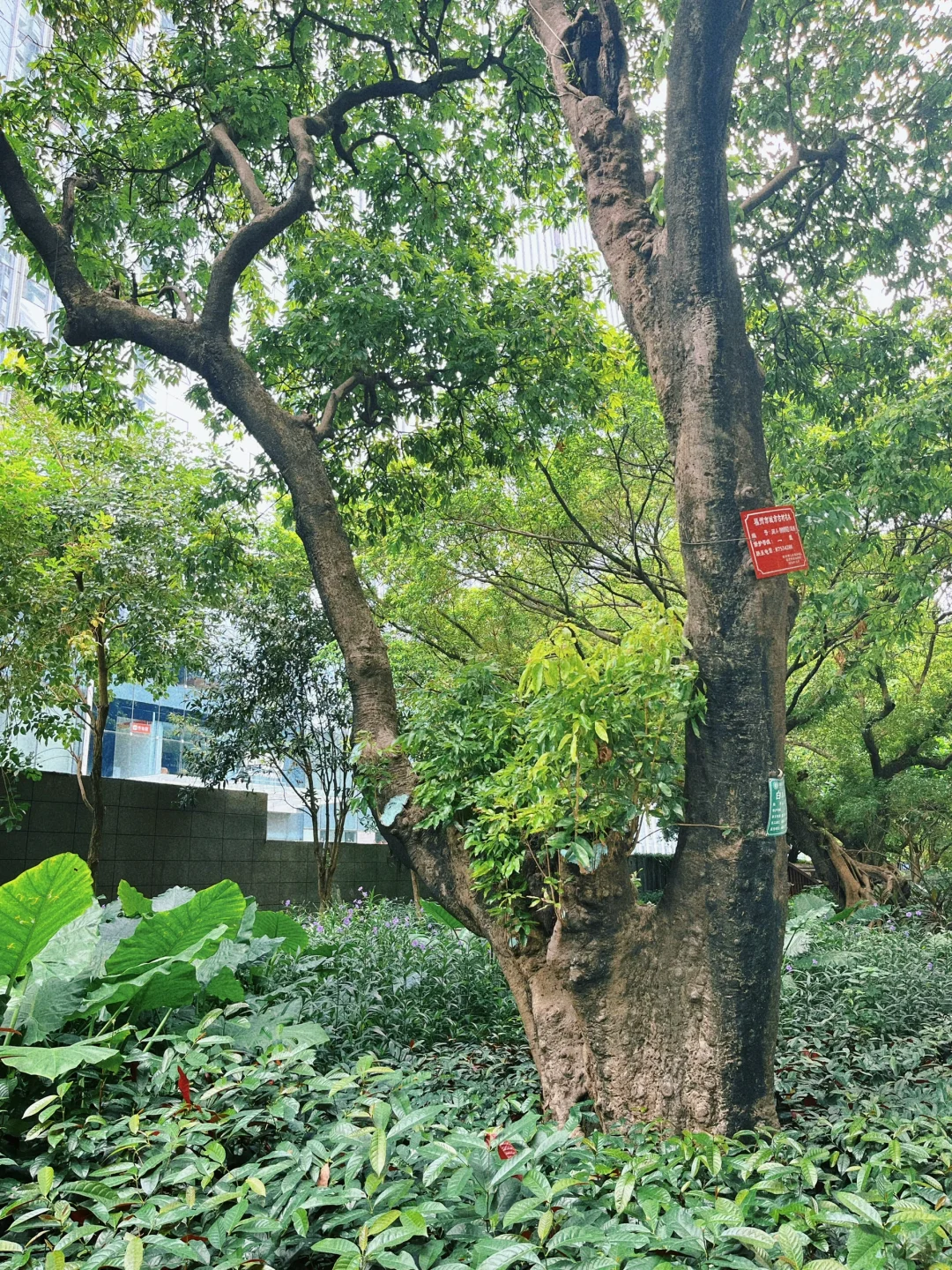 之前我笔记已经介绍过岳峰小学旧址的唐荔和芙蓉园、二梅书屋的明荔。近日发现在福州五四路,靠近恒力城的南侧也有一株古荔枝,编号闽A00002号(鼓楼)。