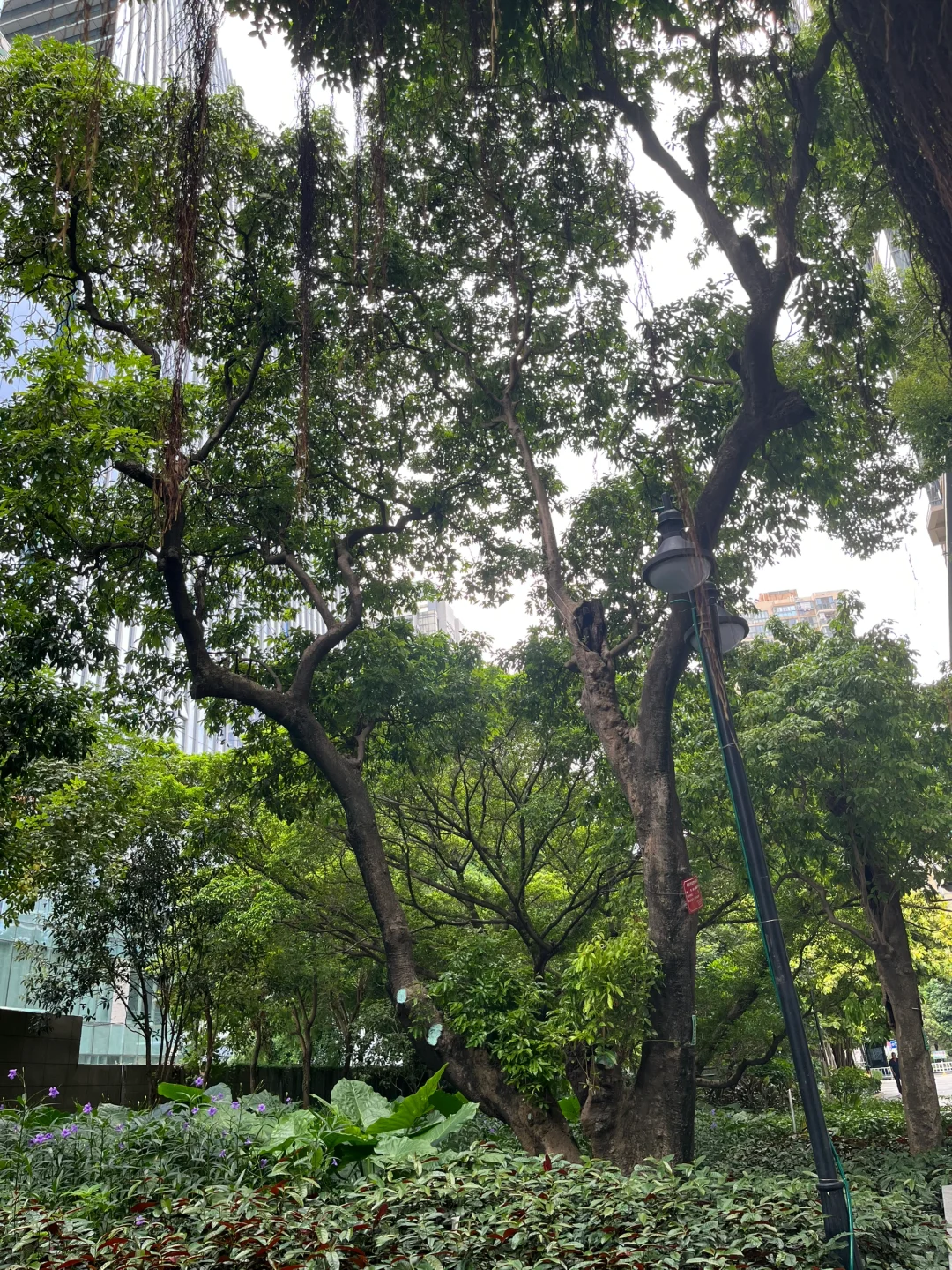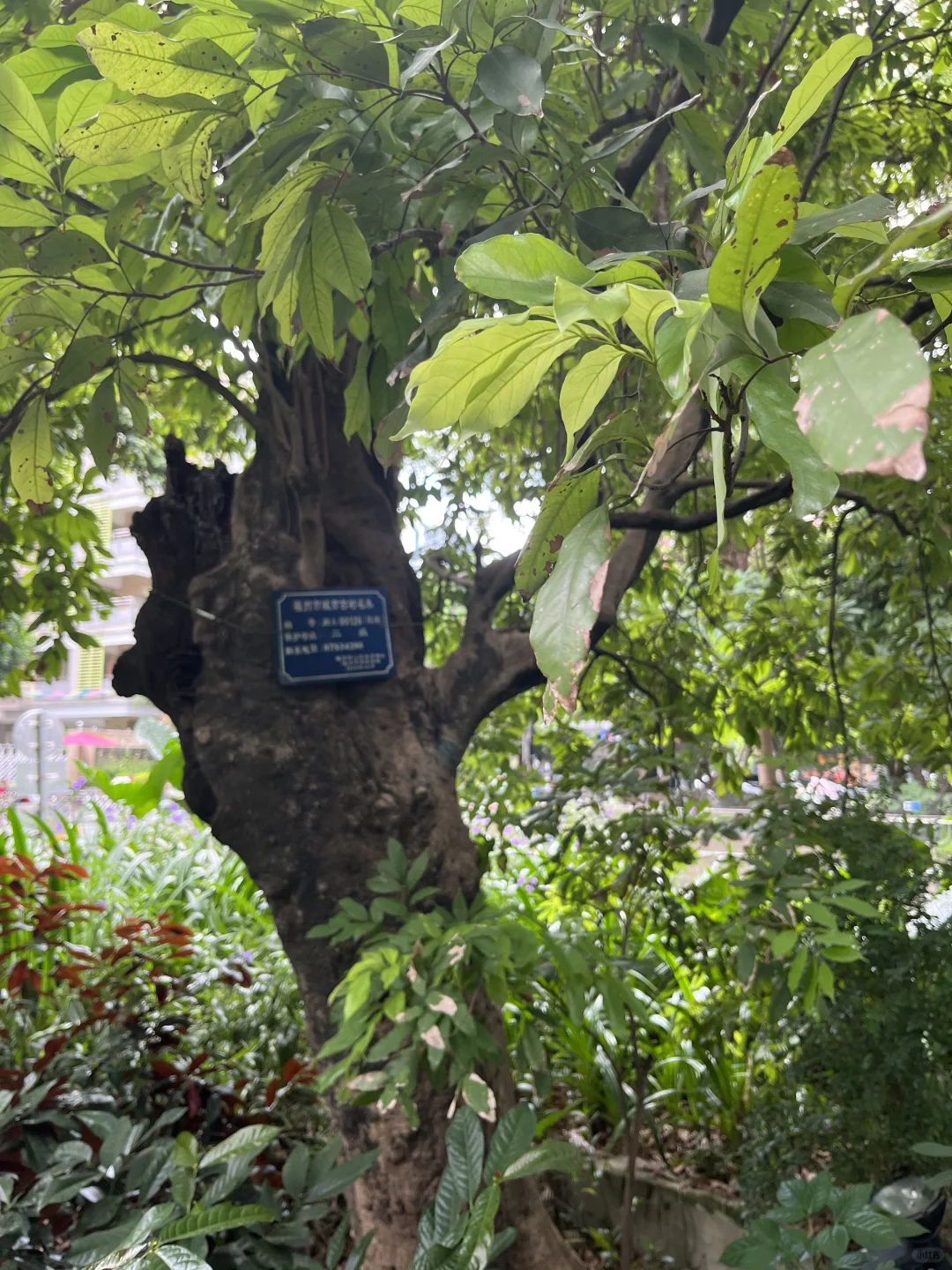 这棵树周围,残存的其他三株荔枝也都有挂牌,分别为闽A00123(鼓楼)、闽A00125(鼓楼)、闽A00126(鼓楼),长势都不算太好,可能跟多次建设翻修有关,且这里还有若干榕树等冠幅较大、长势强健的植物,阳光非常有限。