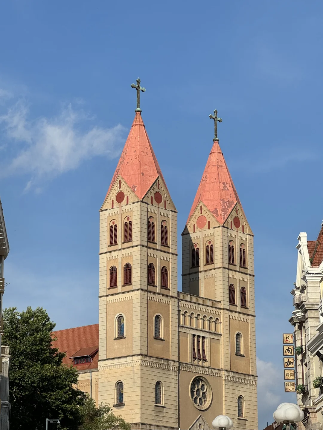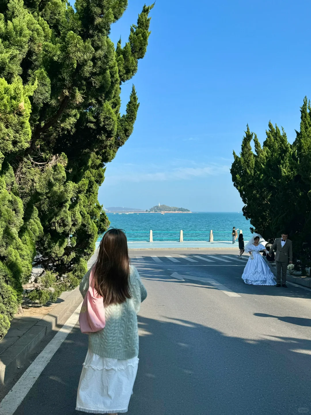 真的别直奔栈桥啦 人多还不好拍 栈桥右侧这条海岸线人少景美 ✨具体路线:青岛站(地铁站)——西陵峡路——李慰农公园(栈桥合影机位)——栈桥——天主教堂——大鲍岛 避开了栈桥人挤人 随便拍拍都好有氛围🌊 -