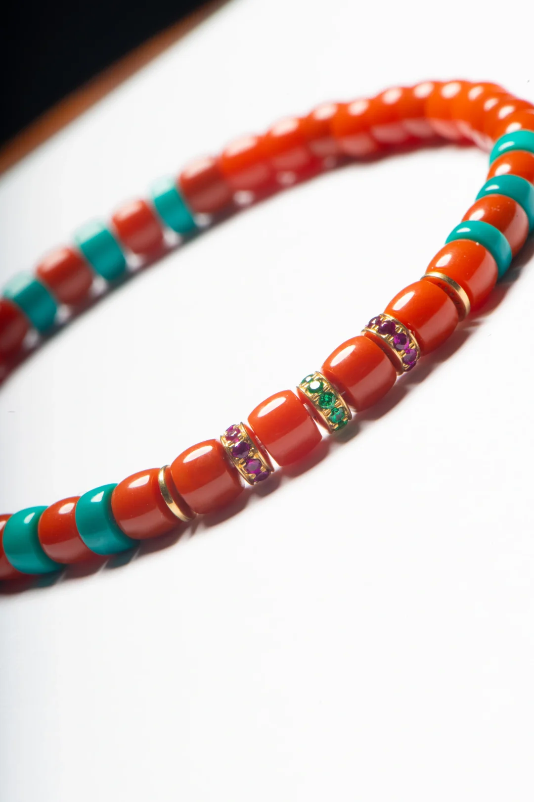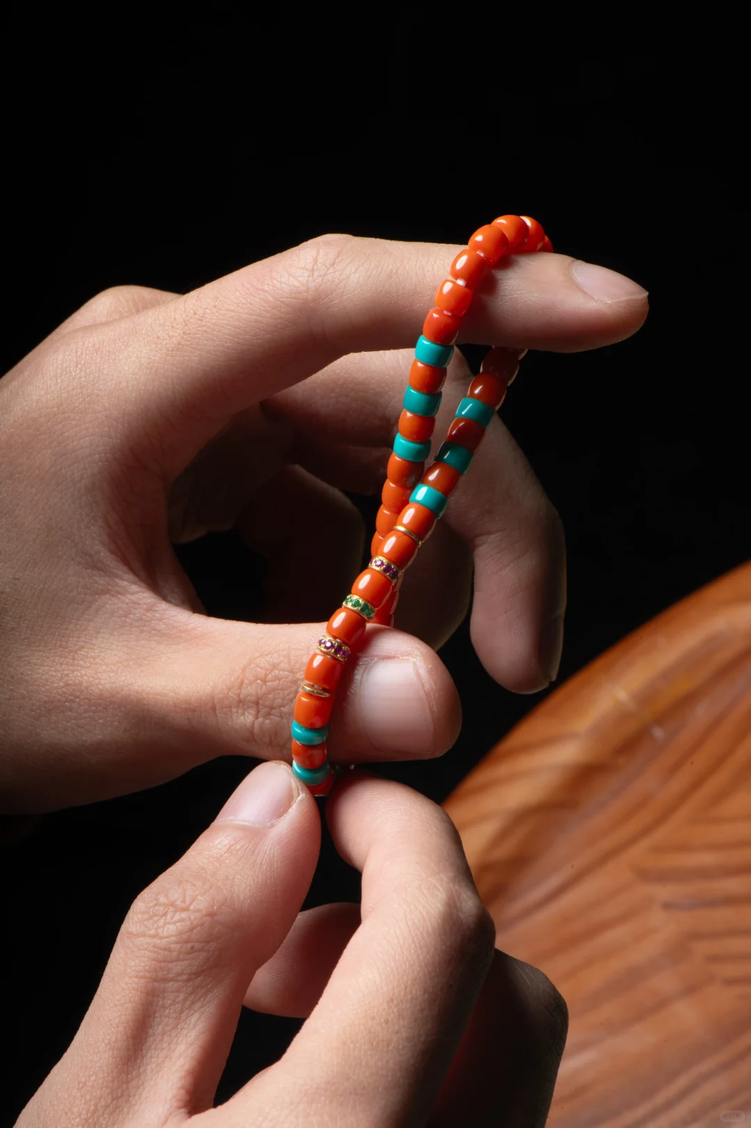 纯正的满色满肉瓦西南红 看着真的很哇噻🎉 毕业级的小货头 搭配绿松、金钻、隔片… 看着就豪华[斜眼R] 还好工作室配饰多 有什么好料子都库库往里加 一不小心出了个豪华搭配款[害羞R] 敦煌配色 满满的中国风 这才是中国人的文玩手串呀🥰