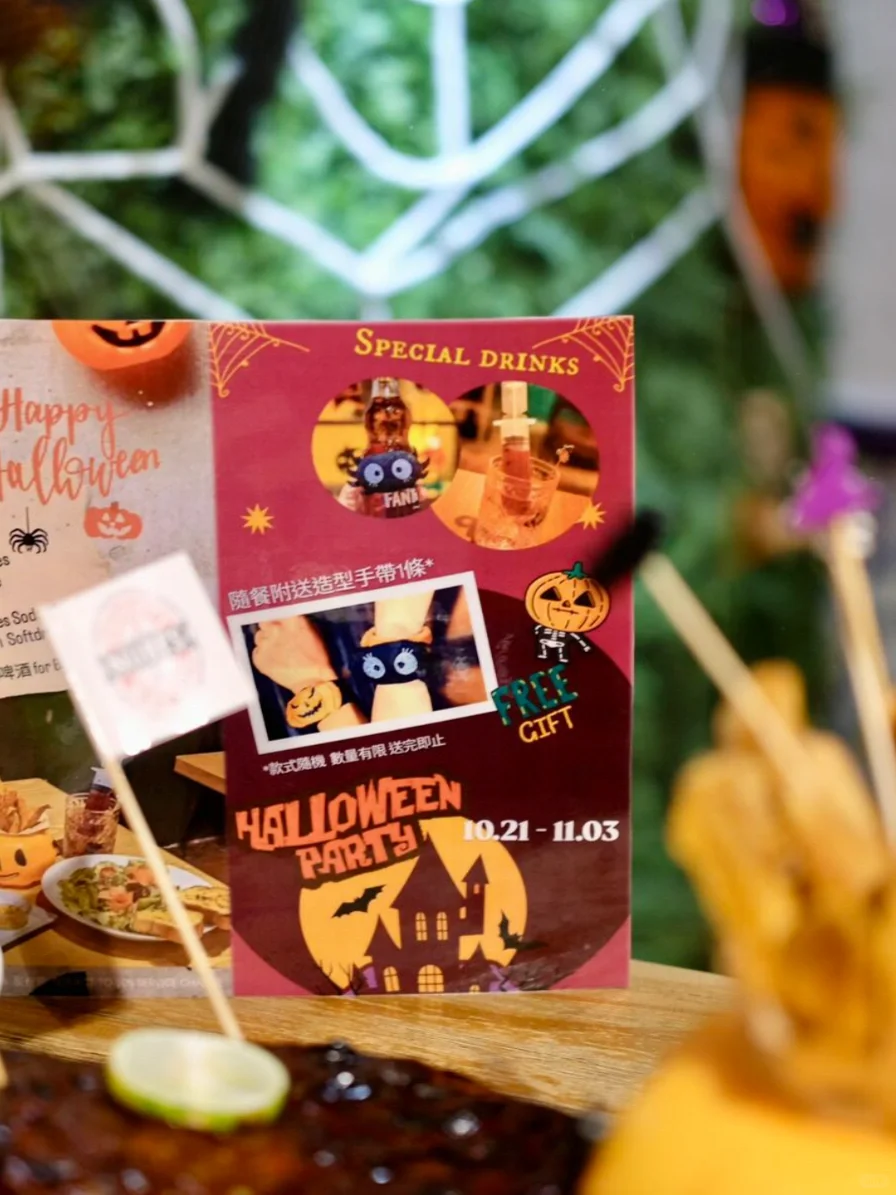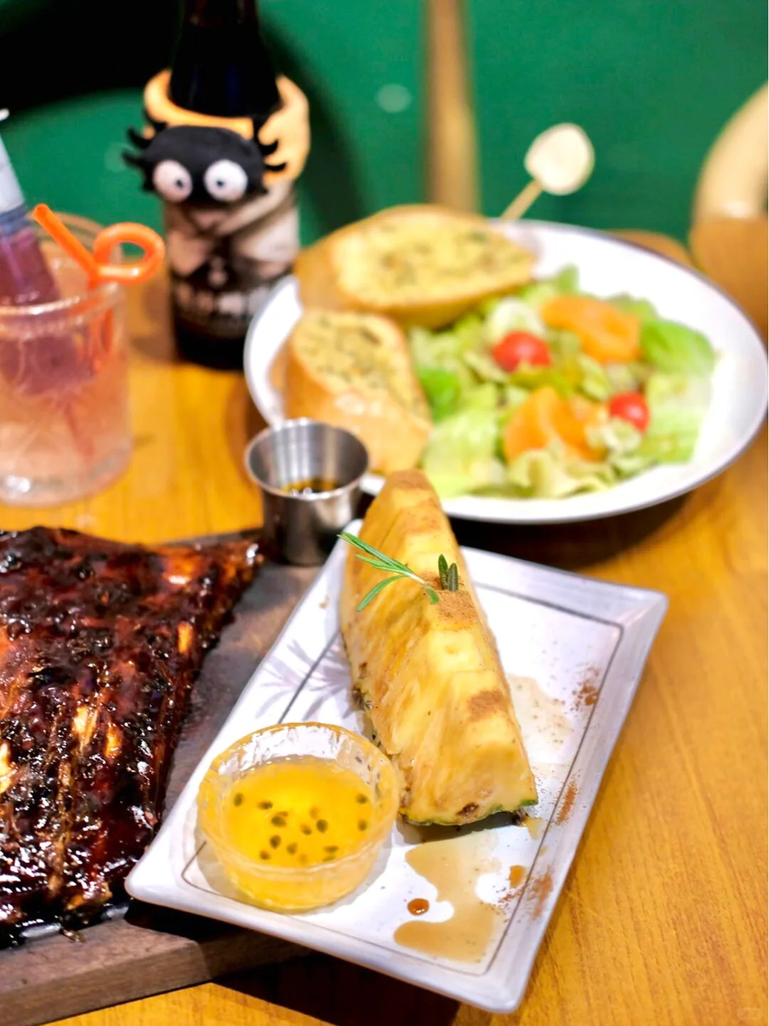 . 这家印尼菜餐厅, 吃过一次就爱上了😭😭 异域风情的菜品真的不错 点了个万圣节套餐🥹 万圣节套餐是到十一月三号~ 啤酒套餐是十一月份开始就🈶️啦 他家的招牌烧猪肋骨排🥩 咸香可口,外焦里嫩 酱汁伴着猪排肉,让人欲罢不能 和朋友直接开启吃货模式来实现吃肉自由啦~ 万圣节浆果汽水🥤 这次新推出了万圣节系列汽水 有果汁的口感,汽水的清爽 一口喝下去超级舒爽,感觉压力都被释放了😌~ 这里的地道印尼口味,满足了味蕾啊啊啊 非常适合和朋友一起来打卡聚餐💗
