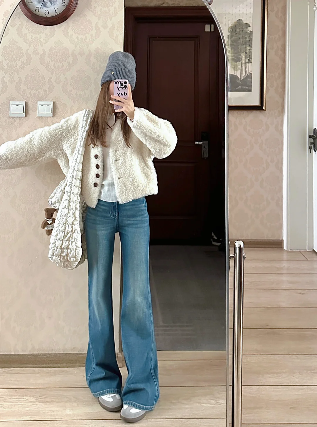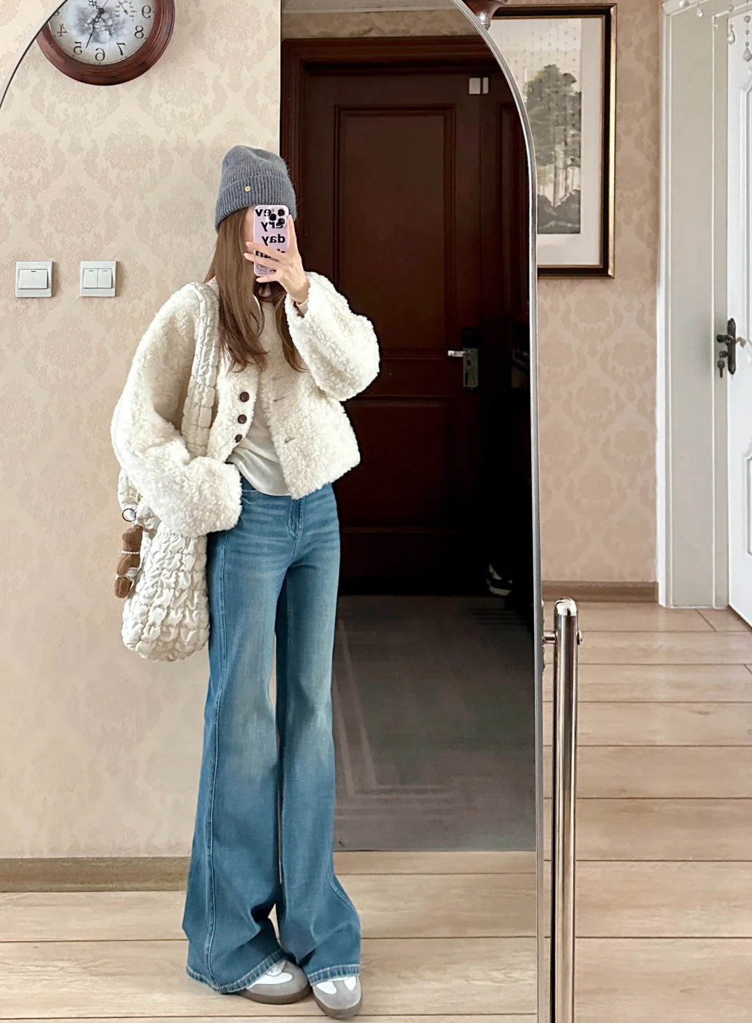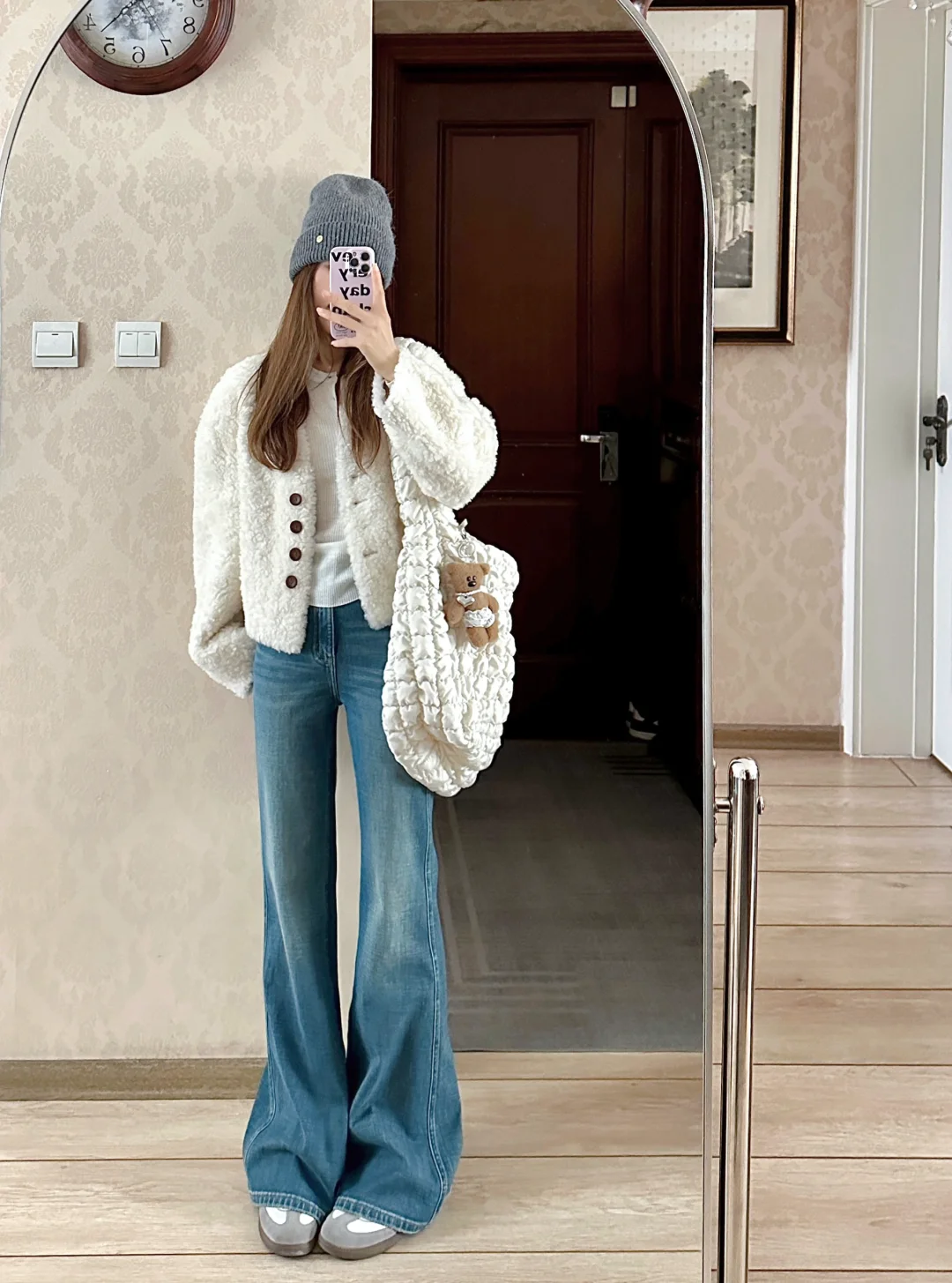 棕色皮草+微喇神裤,气质显瘦绝了!