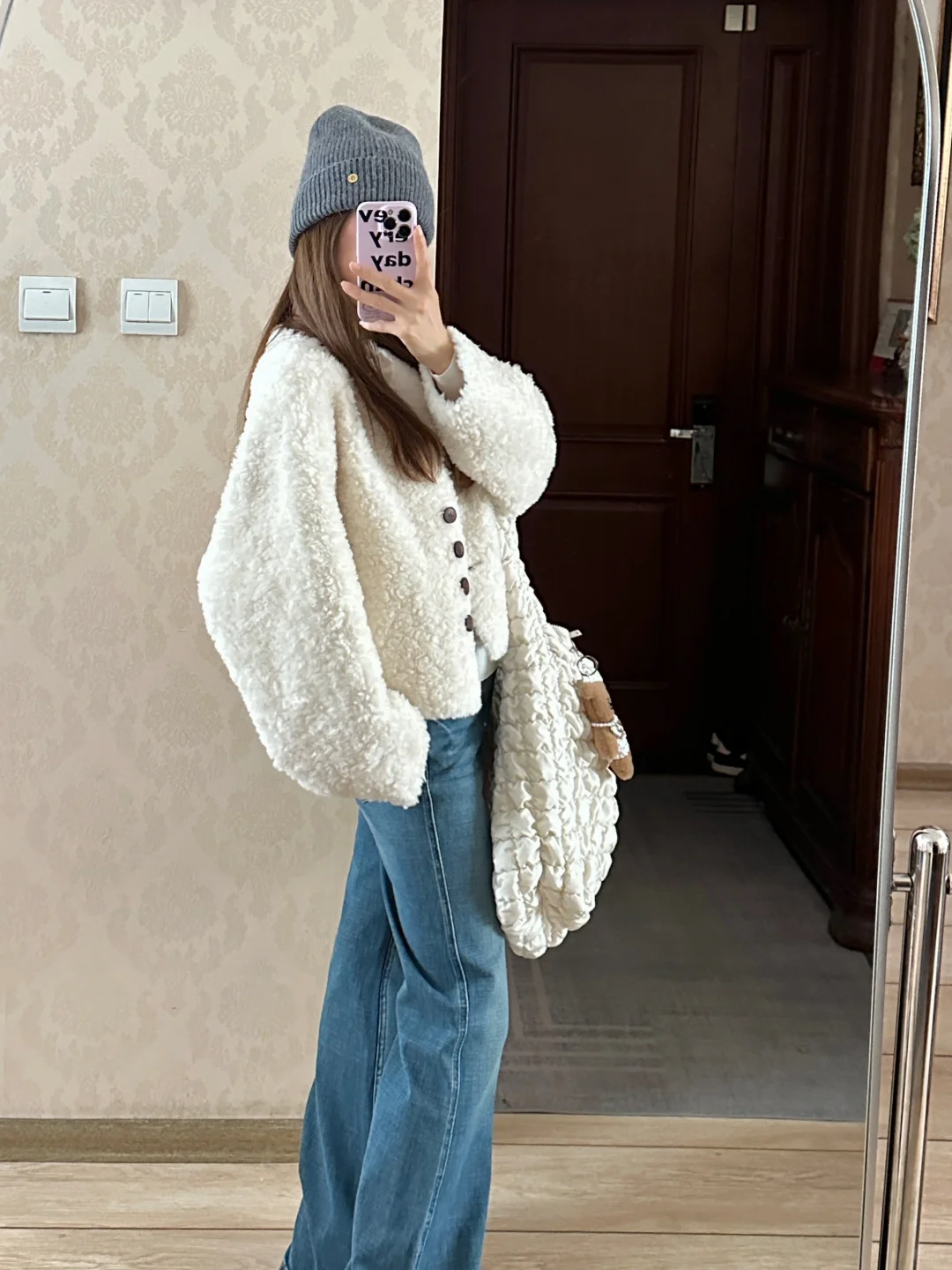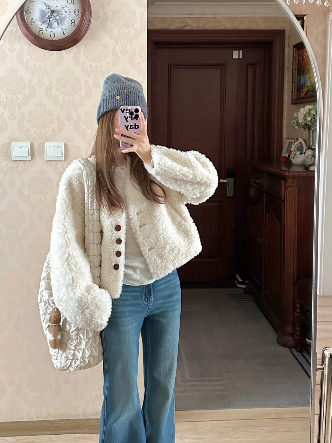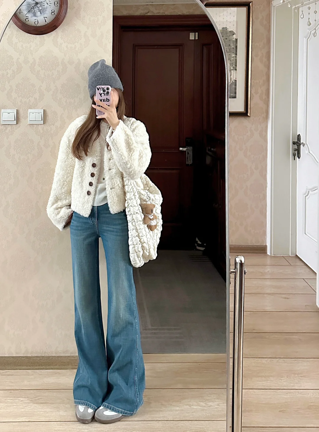 棕色皮草+微喇神裤,气质显瘦绝了!