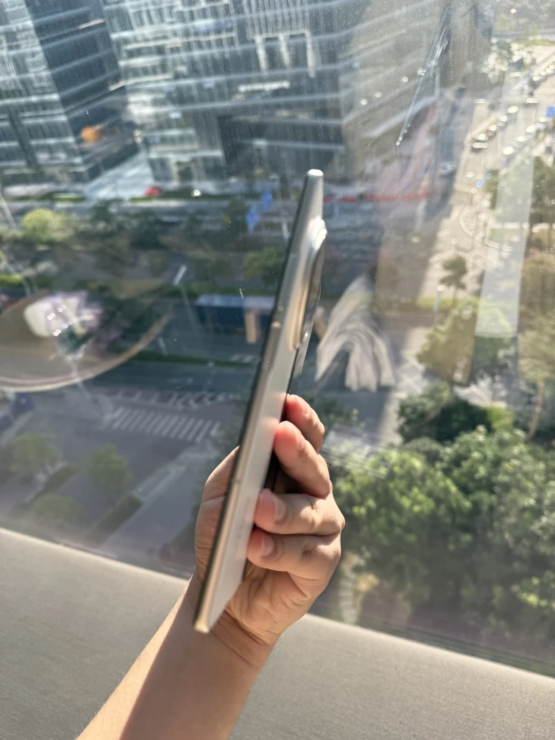 [一R]手感:比想象中的轻薄,重量和iPhone ProMax差不多,厚度厚2mm左右。但是屏幕展开大多了。