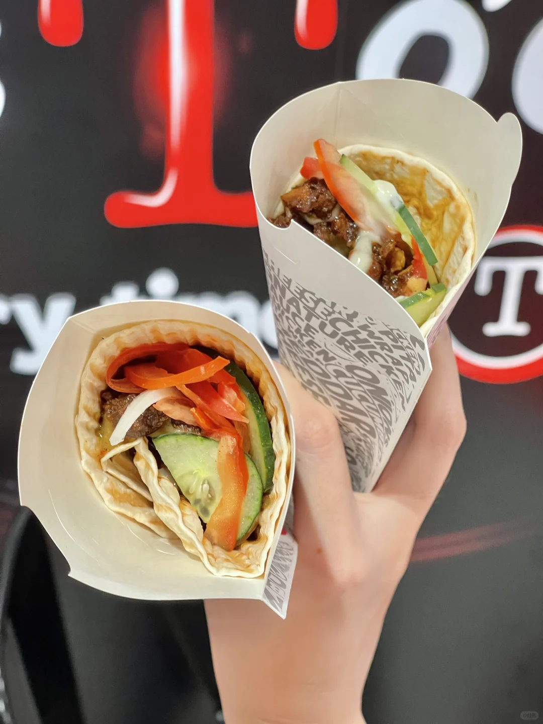 最近几个月新开的,每天晚上路过都在排队!菲律宾风味卷饼看到都要流口水!可以选择牛肉或鸡肉作为主要馅料,搭配上新鲜的黄瓜🥒和番茄🍅,每一口都是满满的惊喜😭