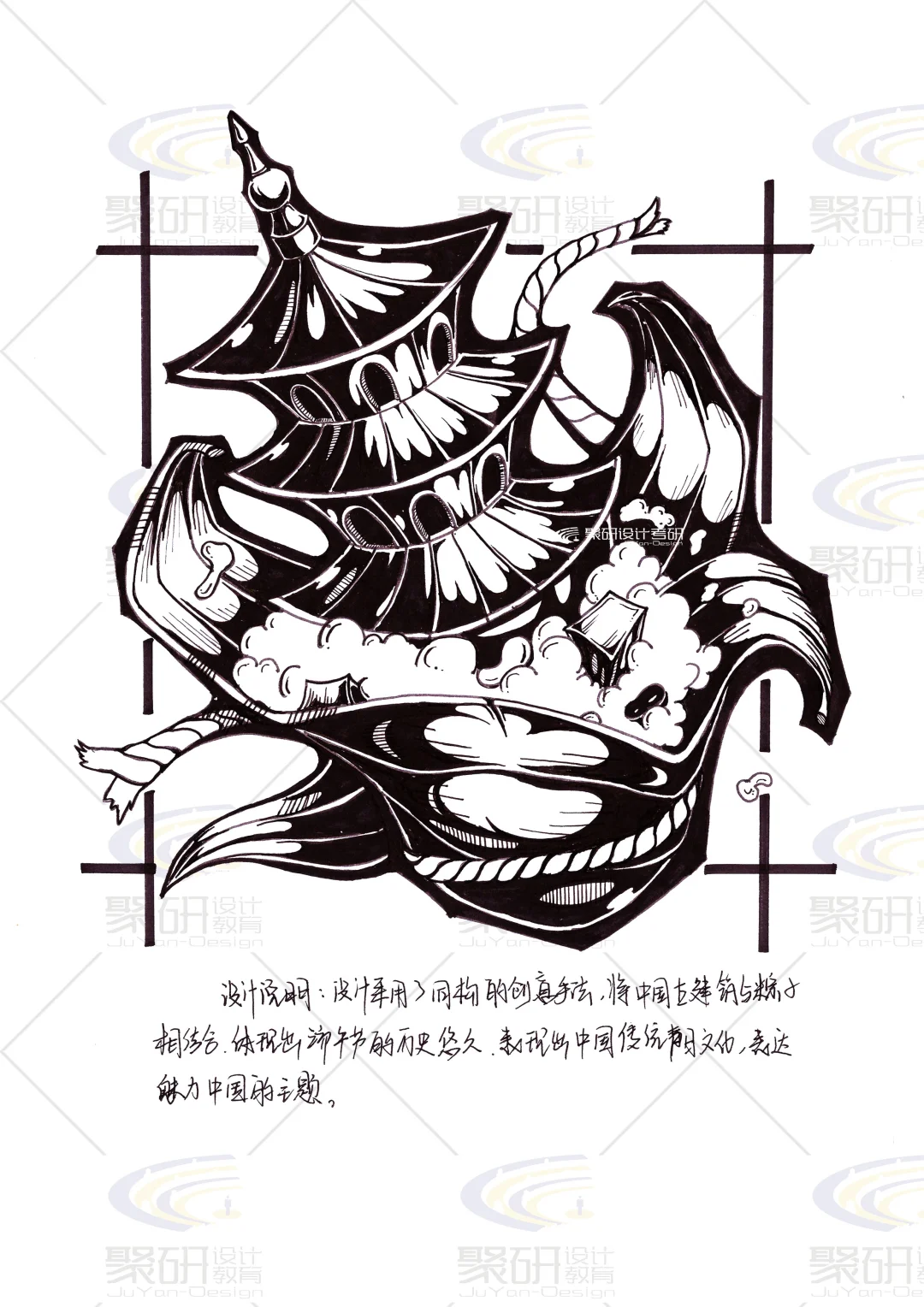 今天又来和大家分享黑白的创意设计手绘啦, 今天的主题是「传统文化」, 今年还有明年准备考研的同学都可以参考借鉴~