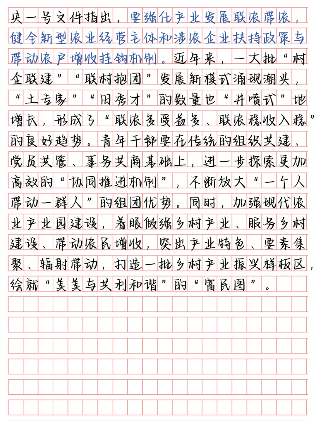 要强化产业发展联农带农,健全新型农业经营主体和涉农企业扶持政策与带动农户增收挂钩机制。