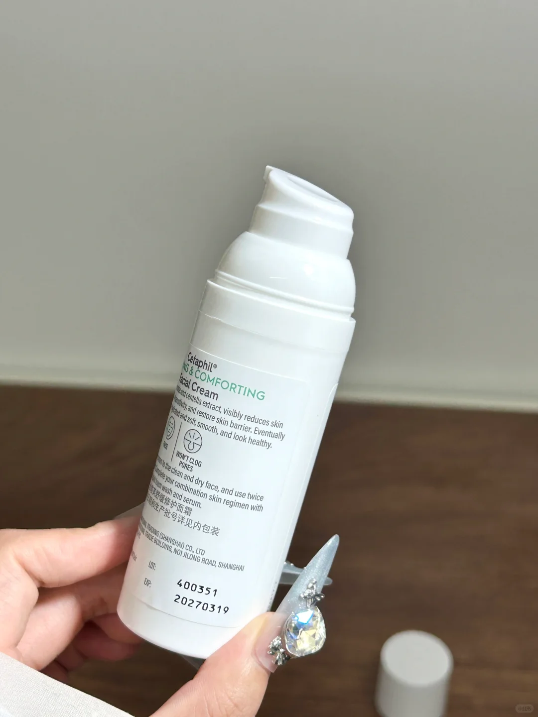 前段时间不是刚好换季嘛,广东风真的很大,上班的路上脸被风吹,到公司室内又吹一天空调,皮肤受冷热刺激,就开始作妖了,一整个泛红、刺挠的,难受的要命!!晚上我就用这个面霜全脸厚敷,大概敷了10来分钟吧,脸上的红就退了七七八八,不适感也减轻了很多!!第二天早晨起床脸直接回春,啥红红敏敏都给镇住了,再薄涂一层,后续上底妆都不会卡了,而且皮肤一整天都稳稳定定的,不会反复红敏!!!