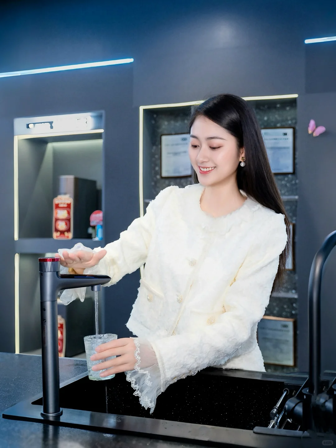 ✔现场我还体验了高清屏显智控龙头,随手一挥就能轻松取水,好便捷