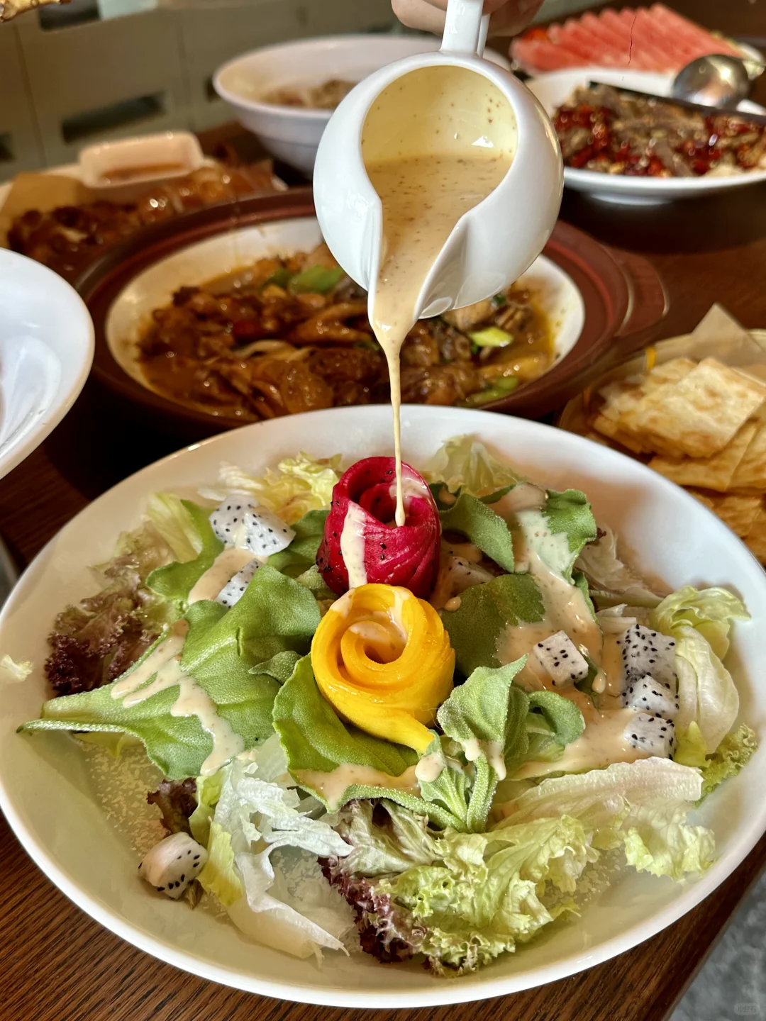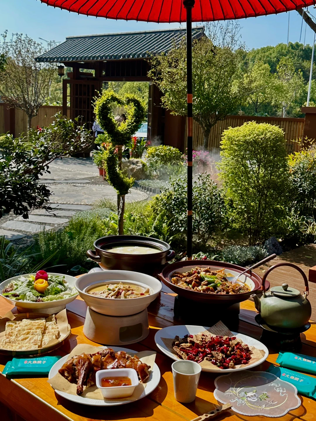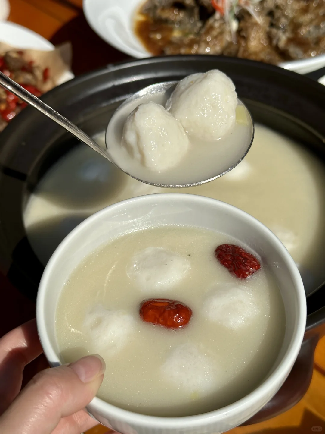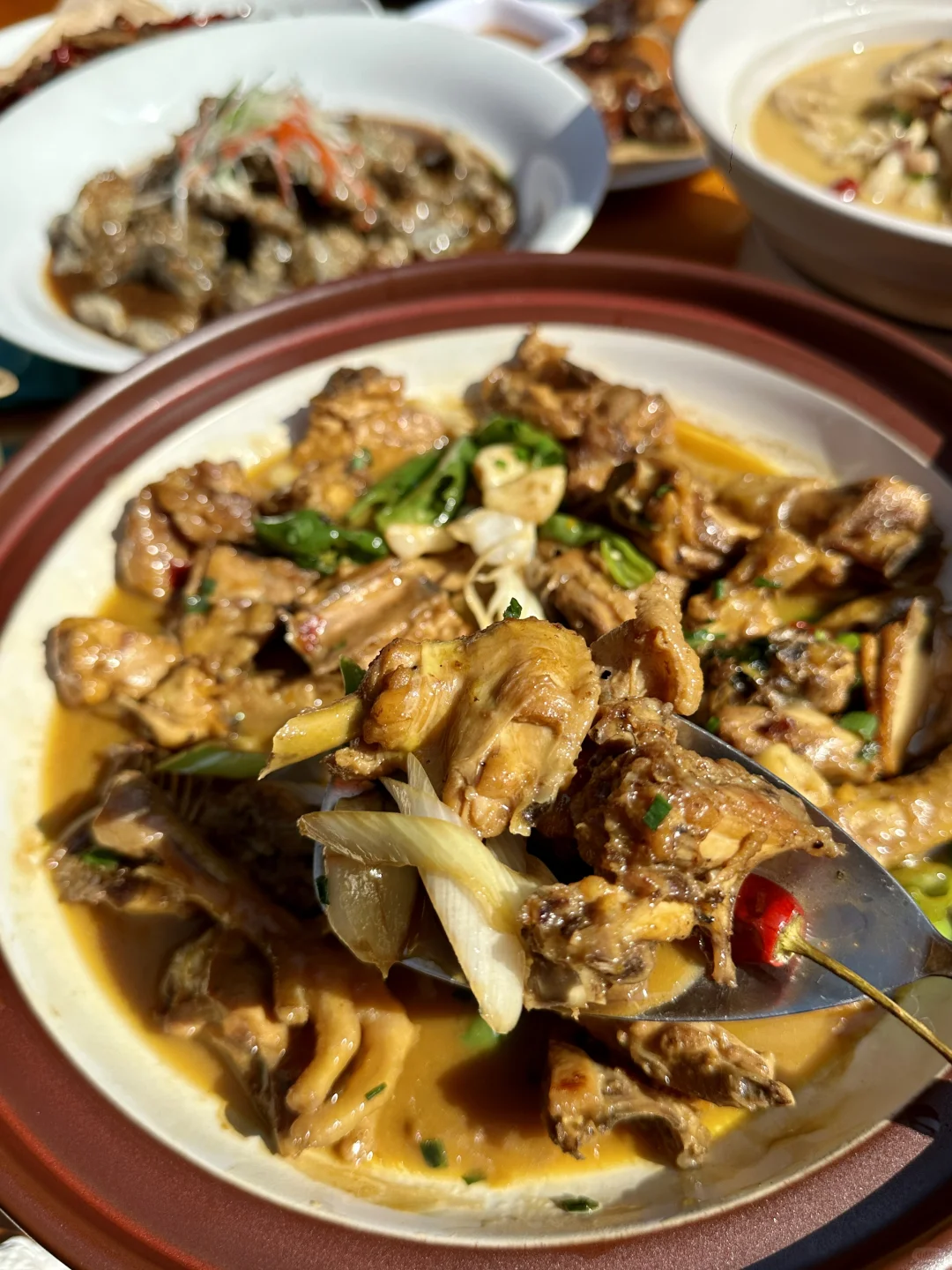 驱车一个小时,进门就被震撼了!! 这么个好地方现在才发现~ 古色古香的中式庭院、河畔睡莲、蜿蜒石径、青烟袅袅~…美如画中景,这里吃饭太享受了~ 湖北才吃的到的粉蒸泥鳅,鲜嫩滑口,味道一jue! 青椒焖土鸡,土鸡的味道就是不一样! 青椒的鲜辣和土鸡一起烧,更是入味提鲜~ 手工鱼丸汤,鱼丸Q弹有劲,汤头鲜美无比,连喝好几碗~