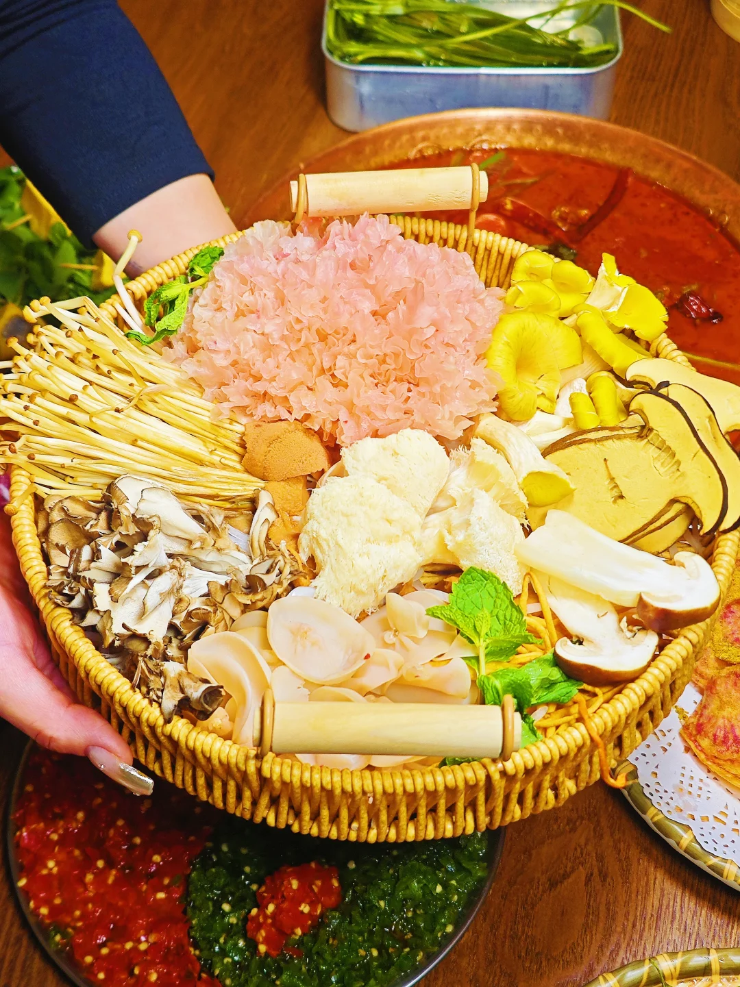 宝,想送你鲜花 涮火锅那种 - 云南火锅吃过 鲜花下辣锅是真没吃过 打卡了世纪金源新开的滇翁!! 这些菜感觉都好有意思! - 菠萝蜜里面包虾滑 花生芽也能下火锅 双椒牛肉造型也是💯 锅底是酸辣的,能吃三碗饭那种 新店!世纪金源你真会开店 -
