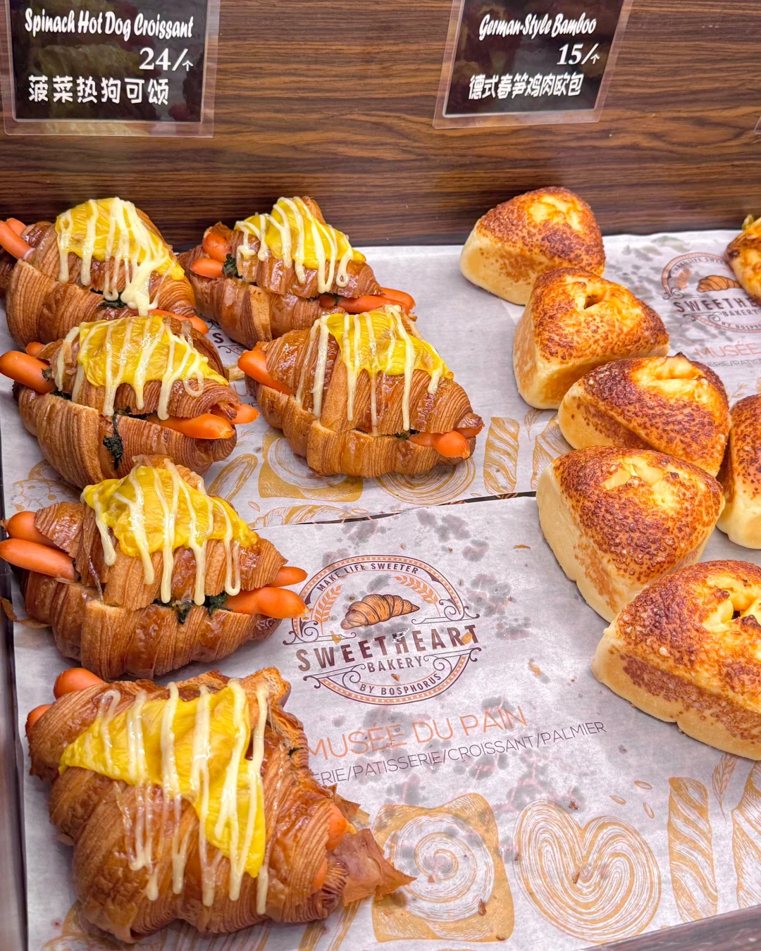 义乌终于也有了😭浪漫的法式风格装修! 超帅的法国老板把法式面包带来了义乌!! - 这家法式面包店简直是法式面包爱好者的天堂,纯手作,出品用心,种类也非常齐全,贝果🥯法棍🥖吐司🍞碱水🥨….还有很多漂亮的甜品🍧,我真的一周来八次🥹 - 另外一定要试试它家的咖啡☕️每一口都是对味蕾的极致宠爱,咖啡香浓且不苦涩,很绝!味道超正👍 - 🏠:sweetheart bakery 📍义乌市福田街道城北路与福田路交叉口世贸中心一楼1005号