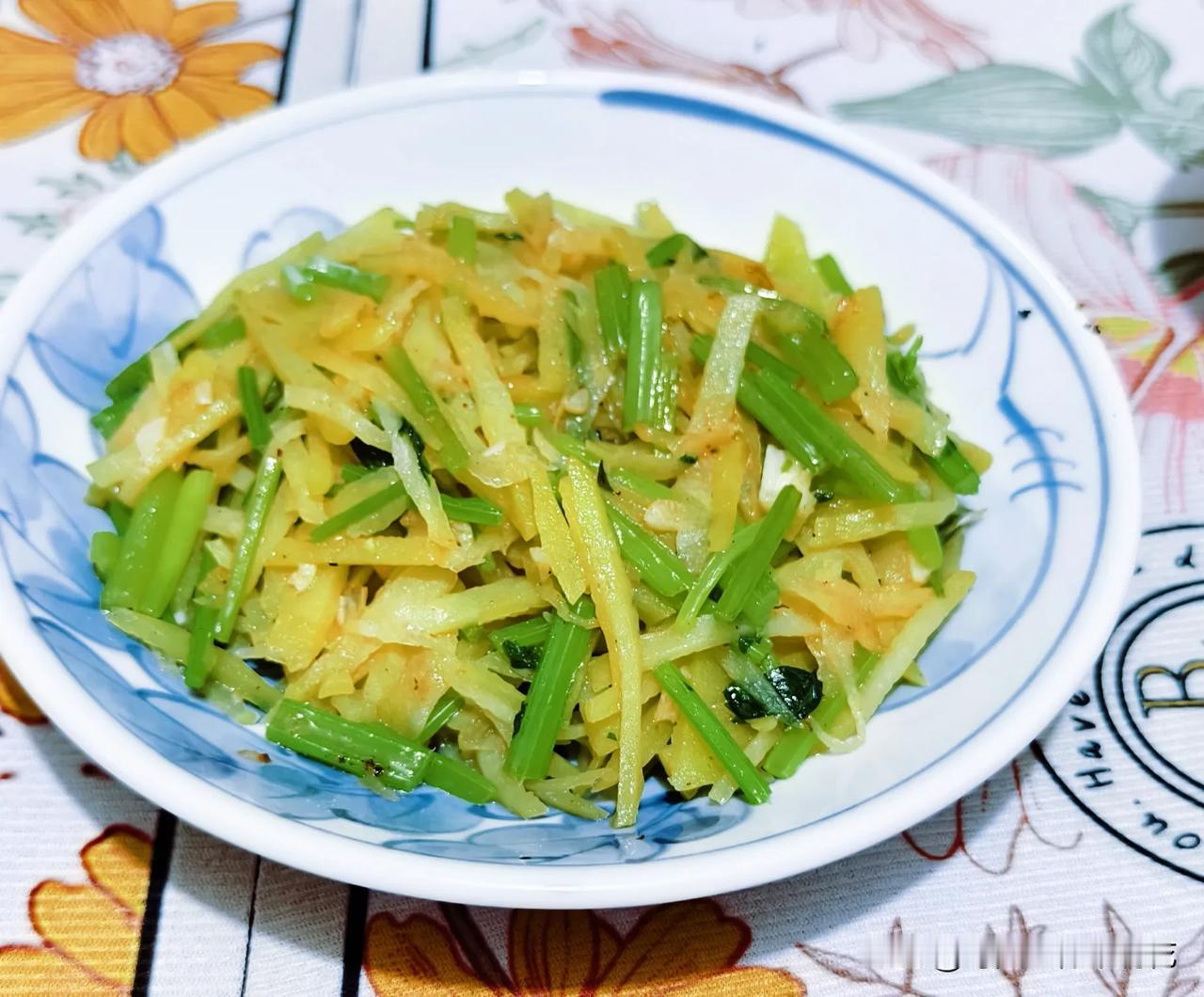 晚上做的油炸花生米,昨天的酱香炖鸡块,土豆丝炒芹菜,炒土豆丝放了点陈醋,香脆可口