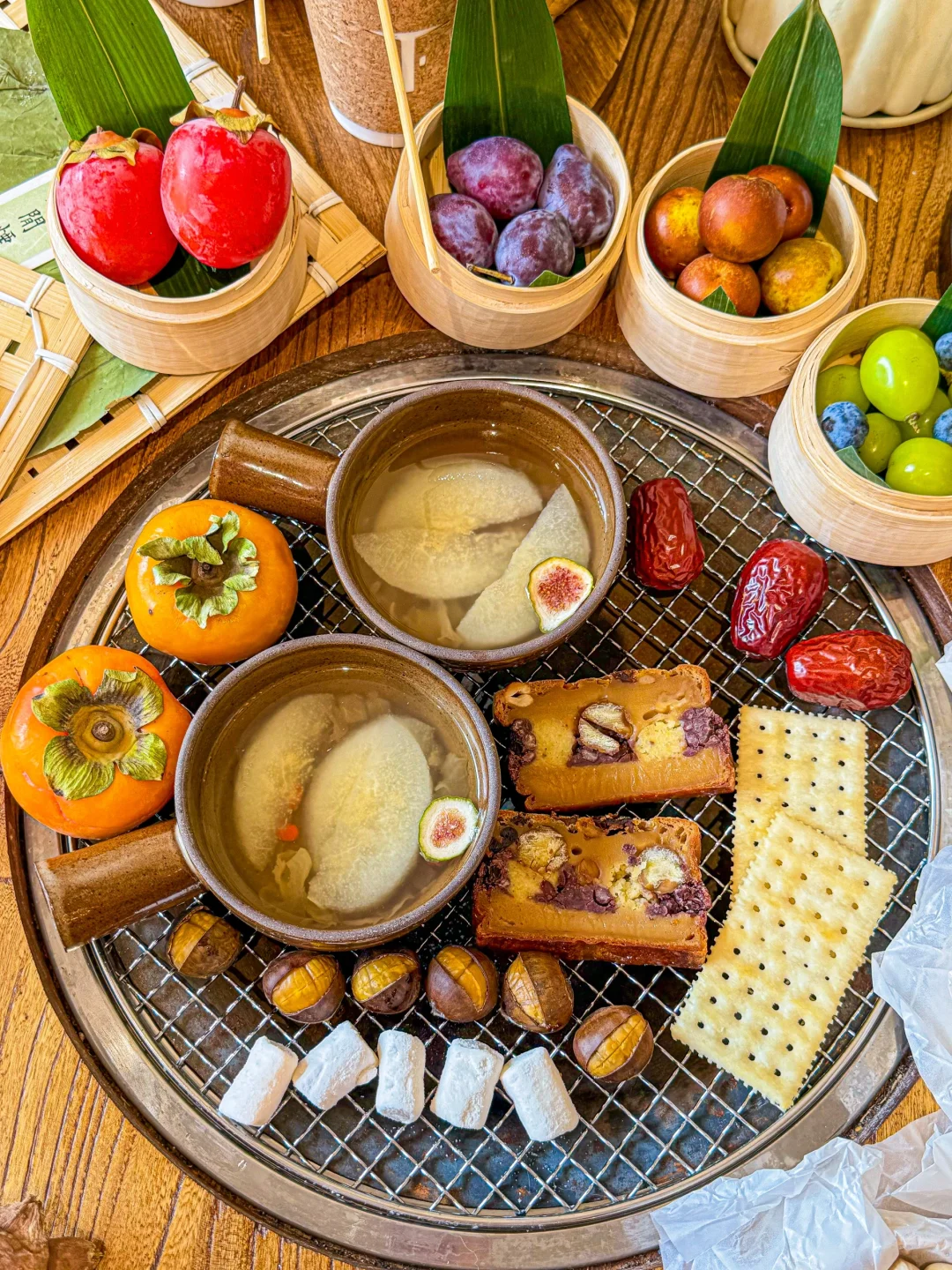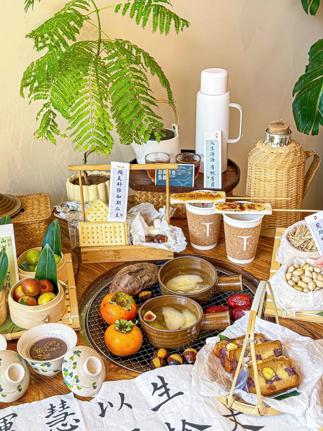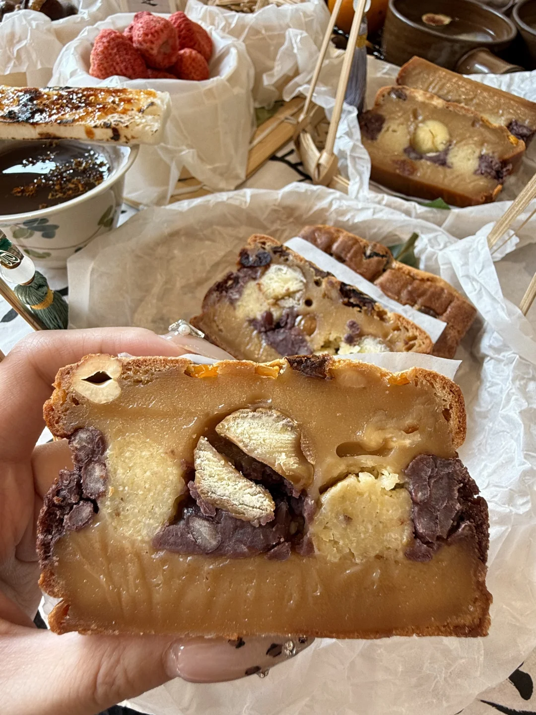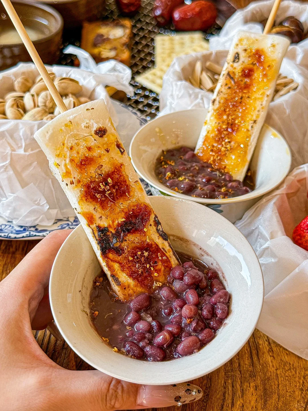 义乌的!义乌的!围炉煮茶天花板! 一待一下午!一坐一满足!非常推荐! 入冬三件套!只愿意带好朋友来的… ▪️烤年糕▪️蜜红薯▪️糖板栗 还有超长拉丝的棉花糖饼干… 还有超好喝的熟普 他们家的烤年糕!超推荐!义乌就他们家有! 红糖年糕里面夹着板栗、红豆泥、坚果…绝了 红豆沙芋圆烤年糕也好吃 红豆泥绵密不甜腻 糖度刚刚好 芋圆也很赞 刷到我的说明你该安排入冬三件套啦~🍁