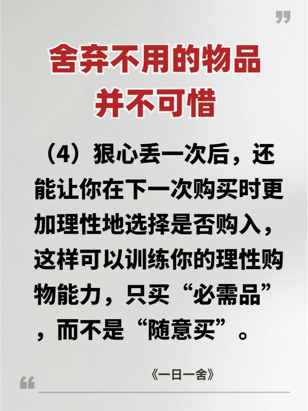 [打卡R]狠心丢一次后,还能让你在下一次购买时更加理性地选择是否购入,这样可以训练你的理性购物能力,只买“必需品”,而不是“随意买”。