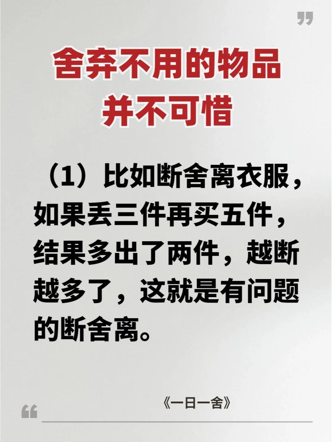 [打卡R]比如断舍离衣服,如果丢三件再买五件,结果多出了两件,越断越多了,这就是有问题的断舍离。