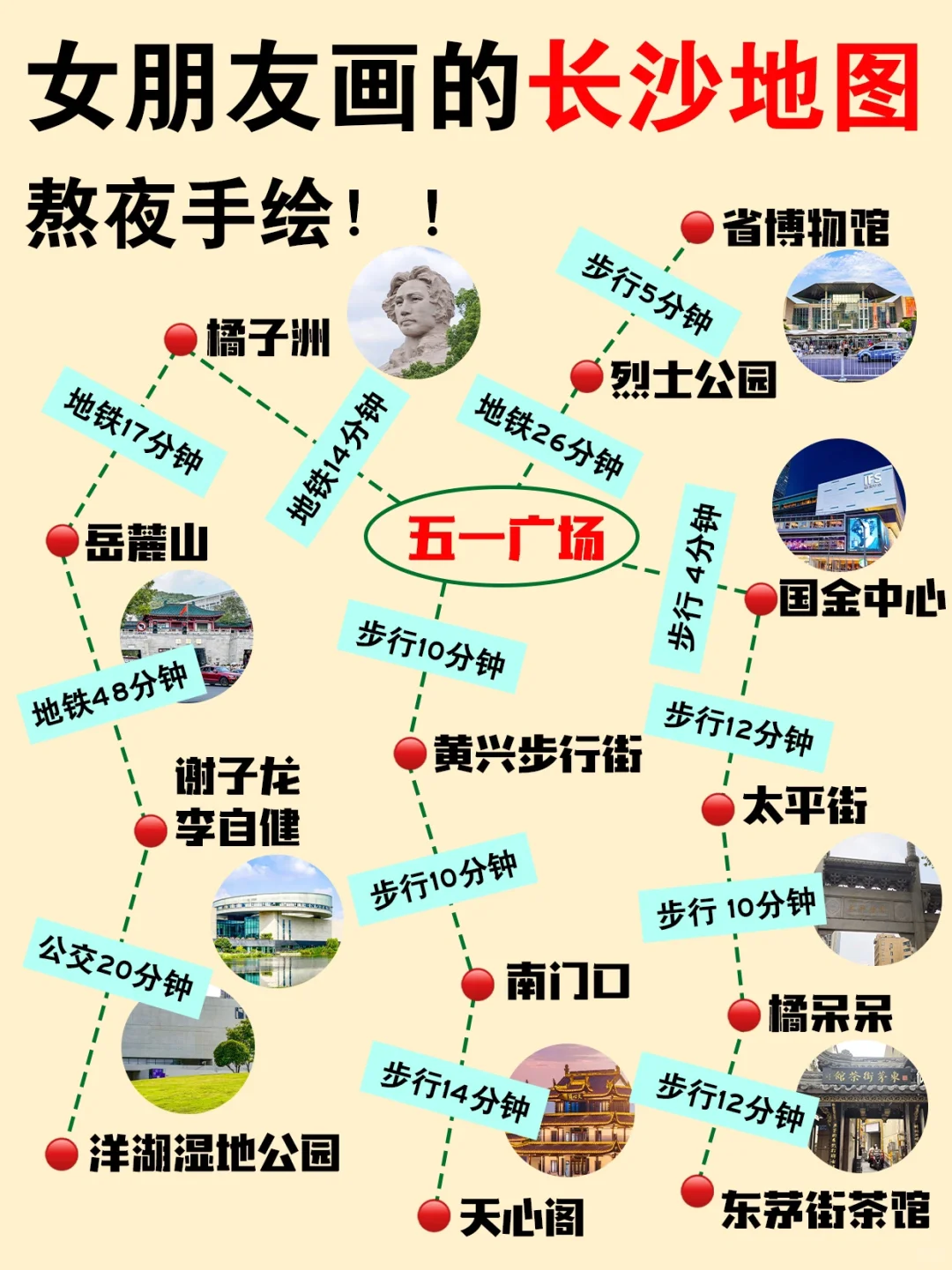 连夜😭整了一个长沙景点的地图!已经被J人女友折服啦!!