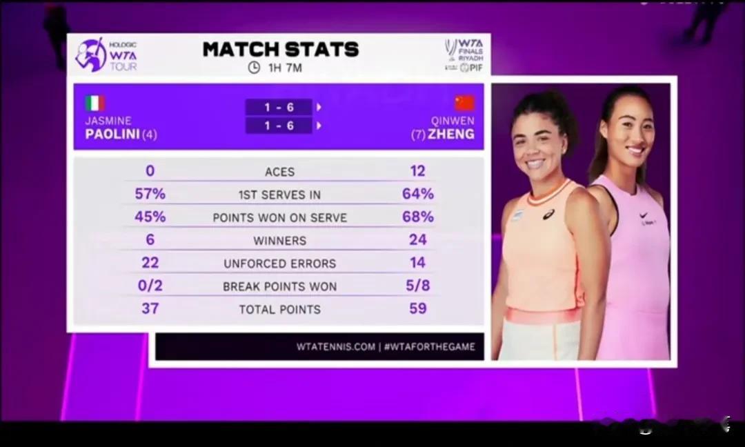 两个6比1,大比分2比0,郑钦文干脆利落拿下保利尼。 郑钦文状态拉满,保利尼被