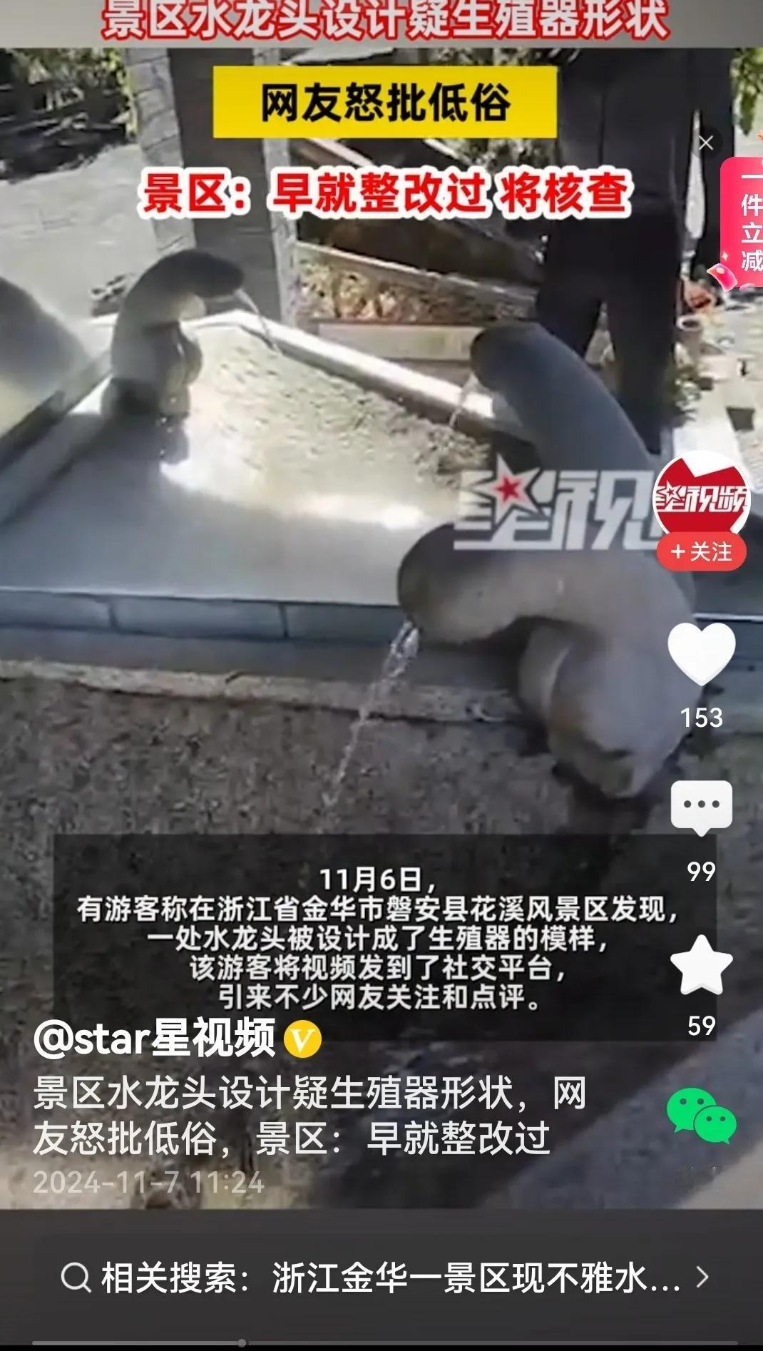 #浙江金华一景区现不雅水龙头# 看过视频评几句: 如果说这个设计灵感来自于比利时首都布鲁塞尔街头那个小男孩正在撒尿的铜像,那这个灵感是荒谬的,可以说是在讨巧。原因在于: 那个小男孩以一泡尿浇灭了导致布鲁塞尔毁灭的导火索,小男孩的那泡尿是智慧与勇敢的象征,所以比利时人才雕塑了小男孩正在撒尿的铜像纪念缅怀这位小英雄,对此可以说小男孩的铜像既是现实主义的,也是浪漫主义的,在它身上我们看到了美。 而视频里的设计,除了明晃晃的简单粗俗,除了扎眼的哗众取宠,现实主义也好,浪漫主义也好,一点没看出来,更没看出一丝一毫的艺术气息,也就难怪被网友质疑乃至反对了。一句话,这个设计出格了。 (个人观点,内容取材于网络)