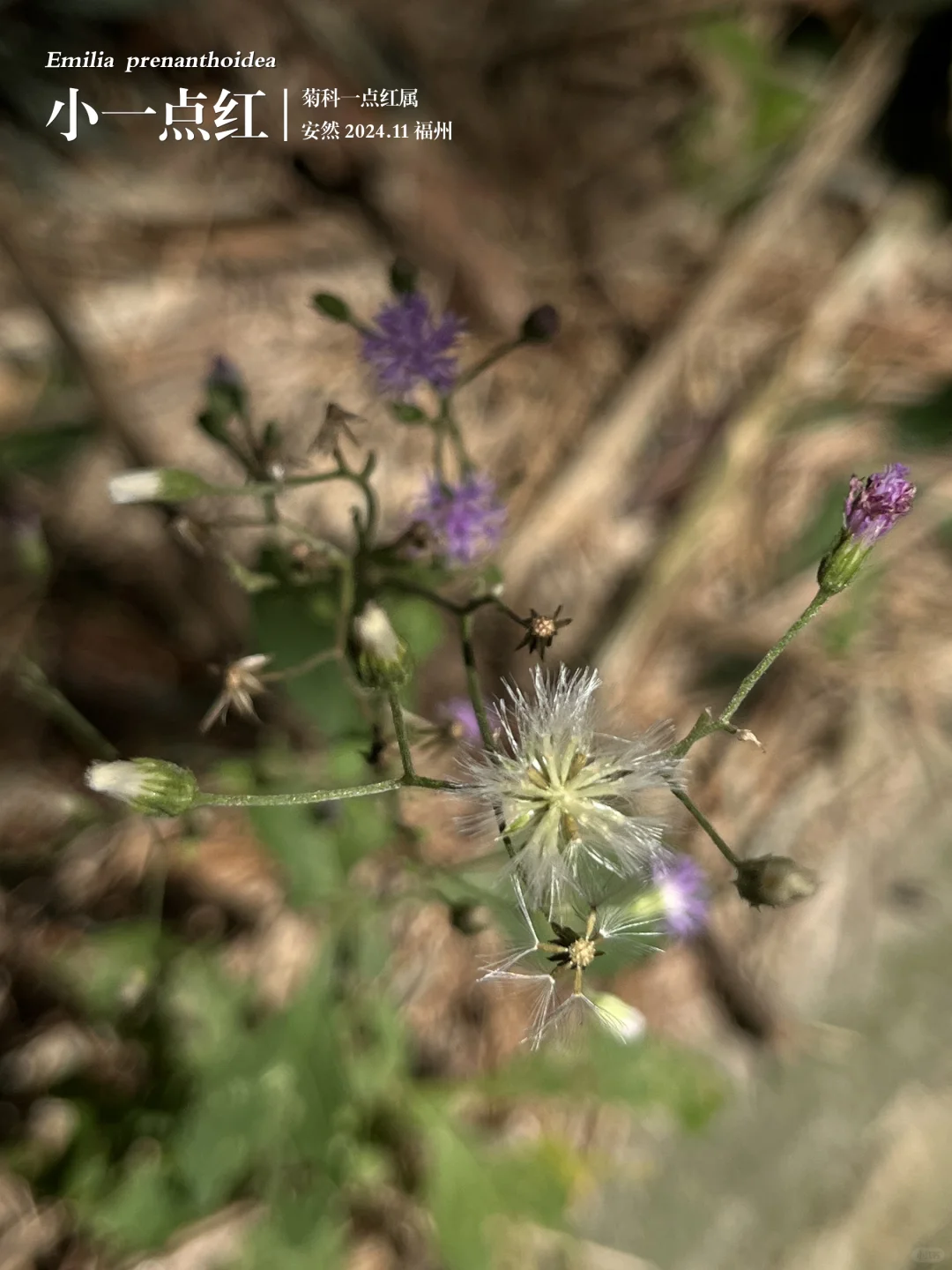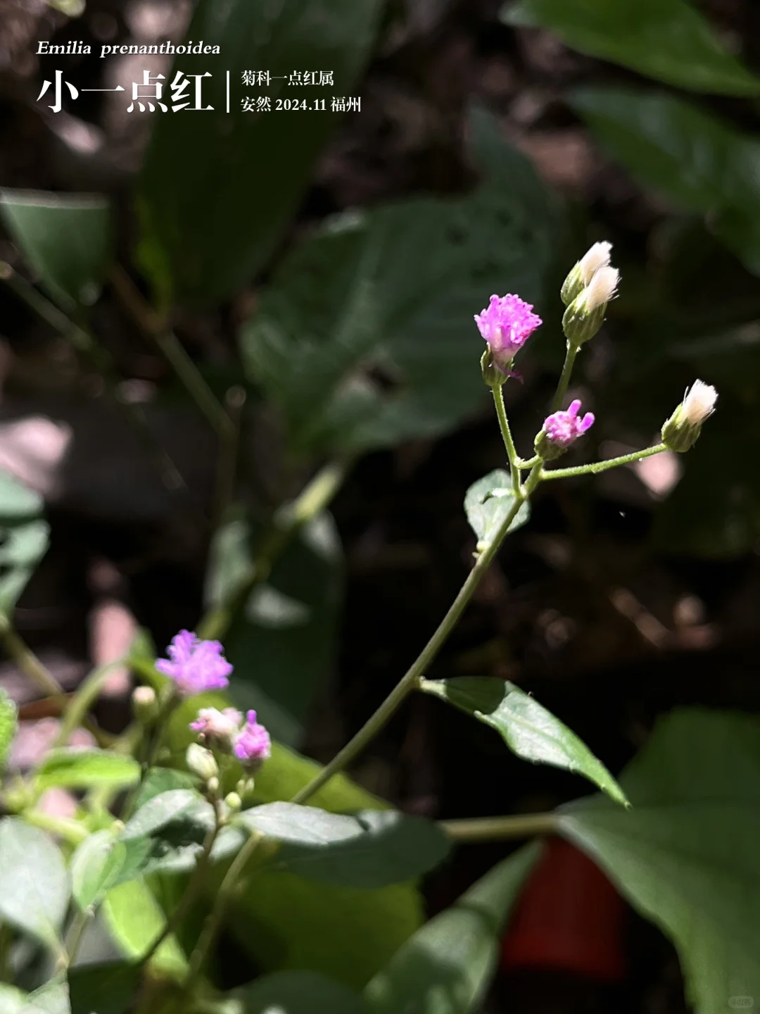 是菊科一点红属的一年生草本,植株不算高。刚刚看到时以为是在《长三角城市野花观赏指南》一书上提到的一点红,但感觉头状花序明显小一点,稀疏一点,茎也更加纤细。回去一查,叫做小一点红。根据植物智,与一点红的主要区别是:下部叶不裂,总苞短于小花;瘦果无毛。