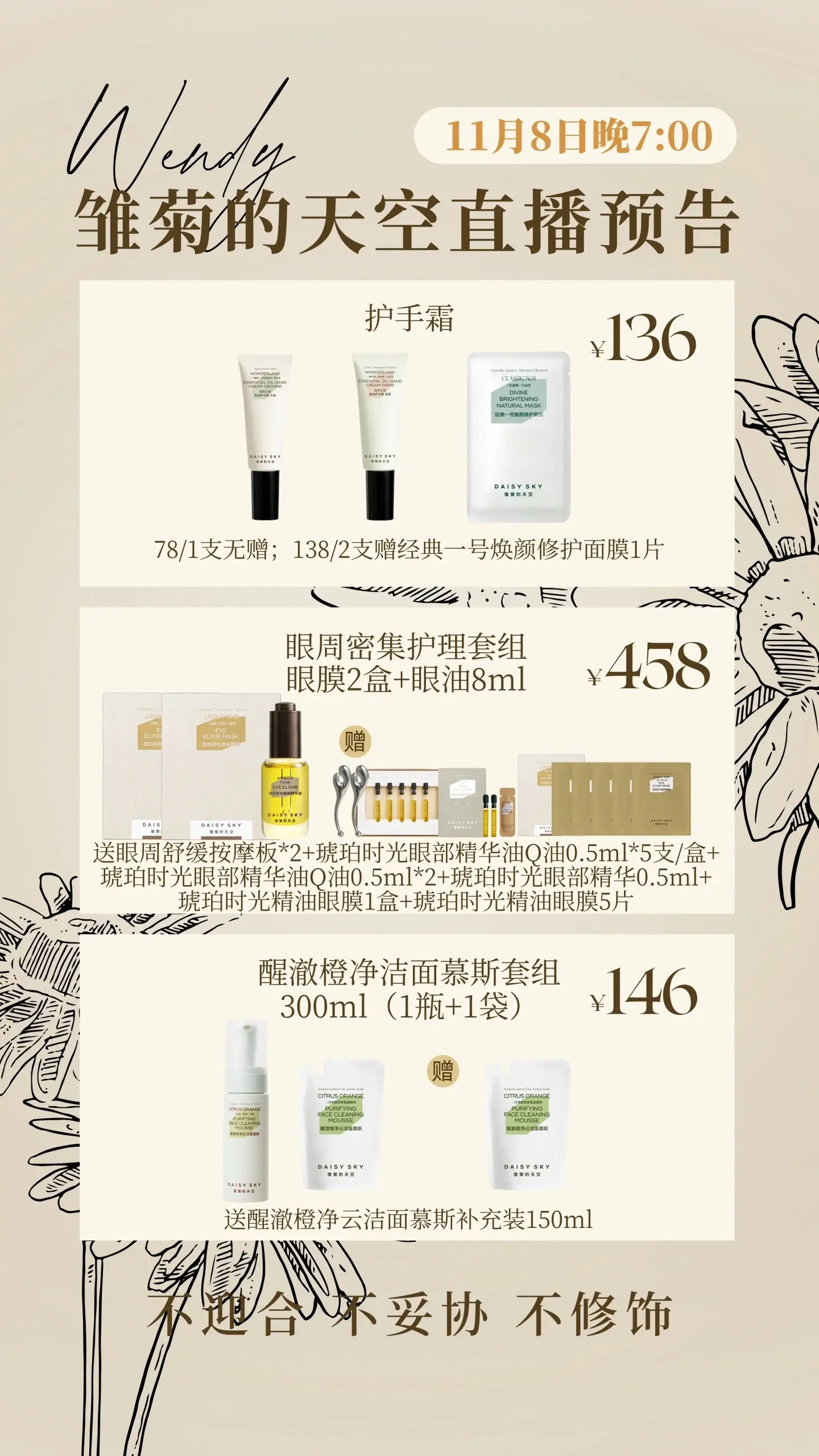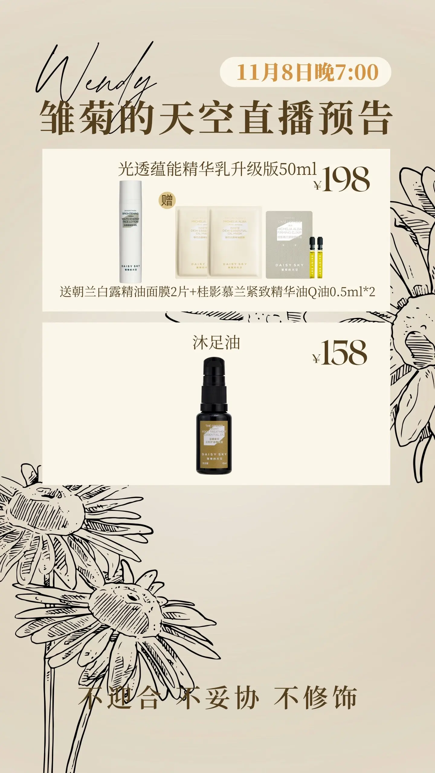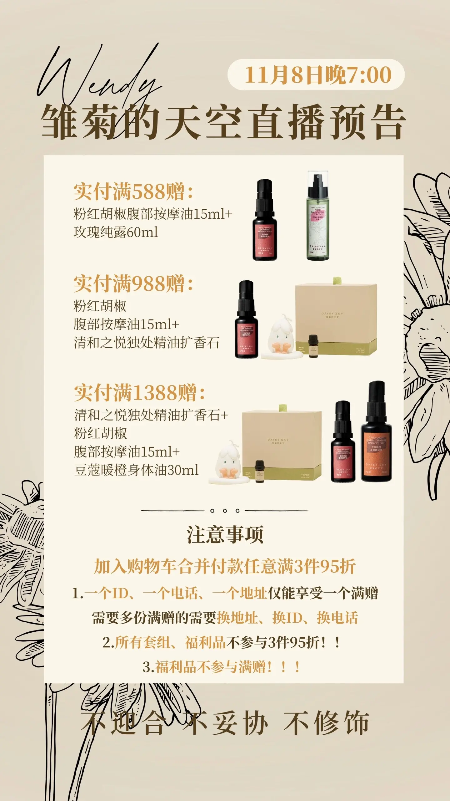 10.11号雏菊的天空双十一专场机制来咯。11号晚7点直播间不见不散哦!!!