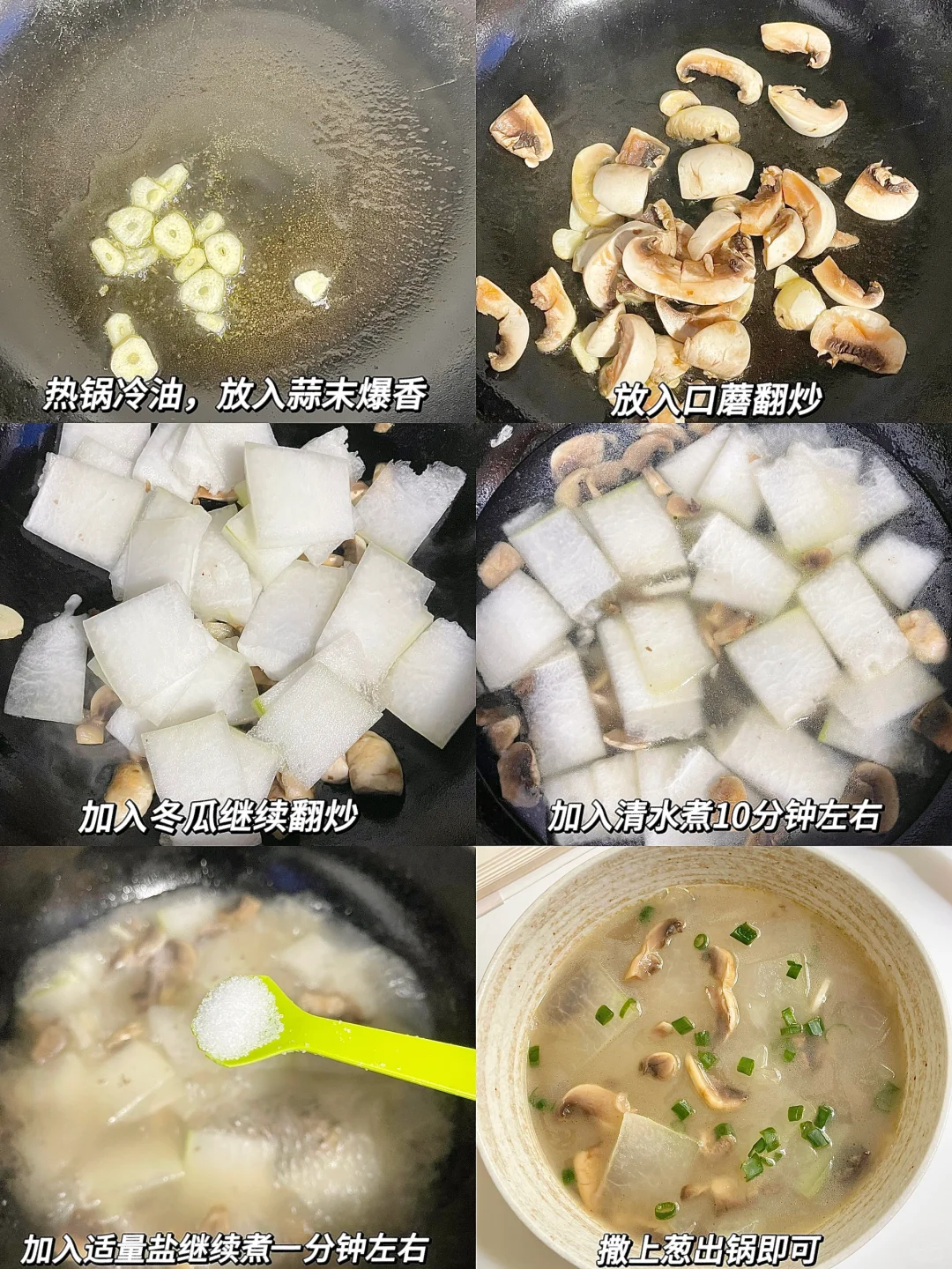 干净饮食具象化♨️ 秋冬口蘑冬瓜汤 暖胃又刷刷脂! 食材:口蘑 冬瓜 调味料:盐 葱 简单!鲜美!低卡!