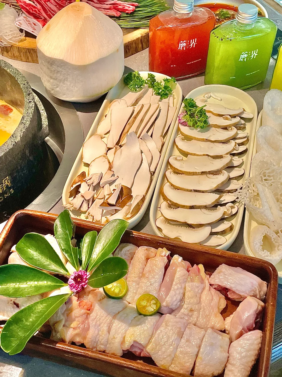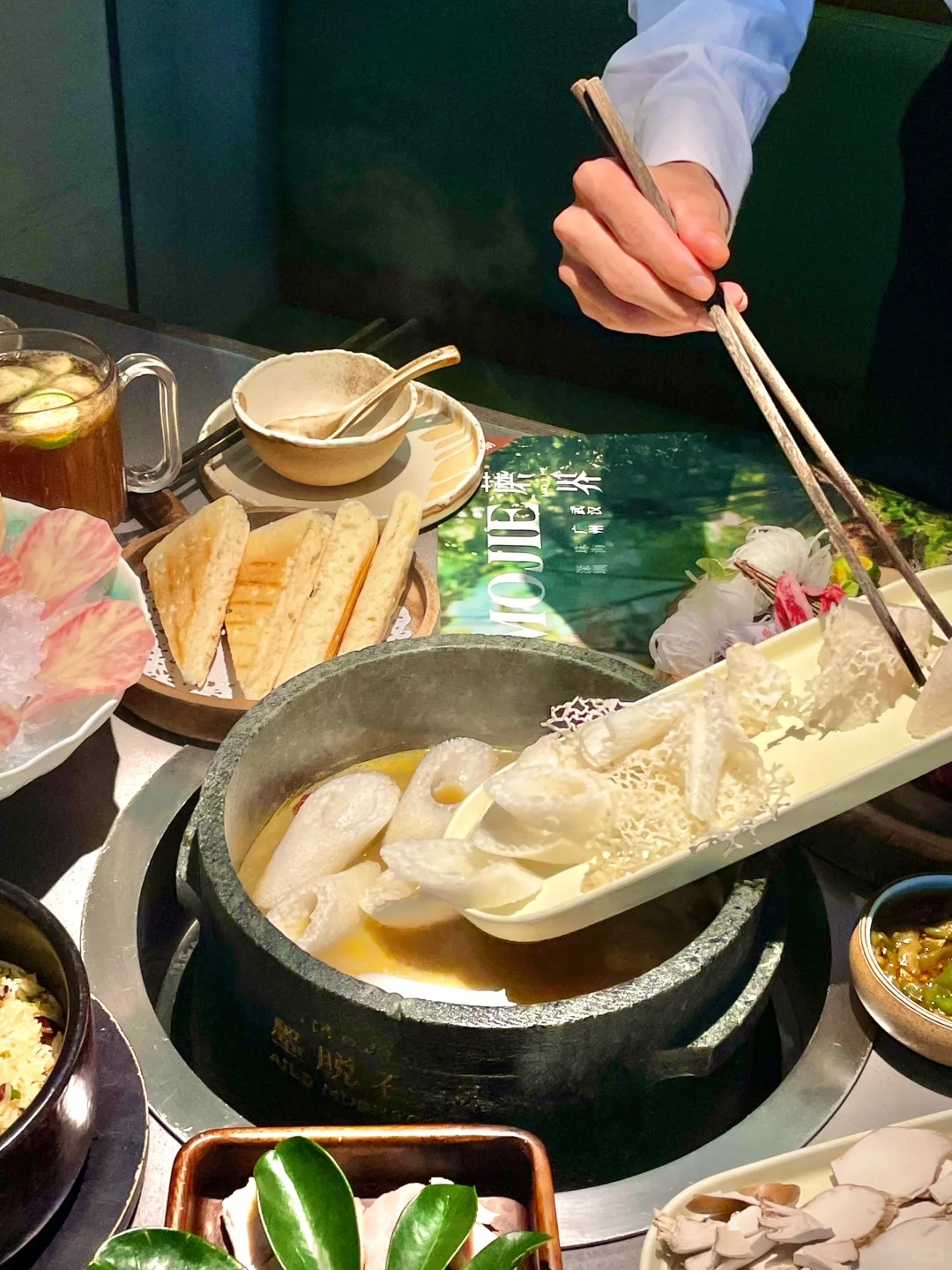 后悔没早点来武汉这家🤤 不用✈️云南也吃到野生菌火锅 墨脱石锅炖的土鸡汤真的太鲜了! 先下菌子再喝汤🍲 满满一大锅各种菌子都有! 降温了来一碗很虚浮😌 还有可以生吃的金耳菌🍄 沾上特制酱料好吃😋