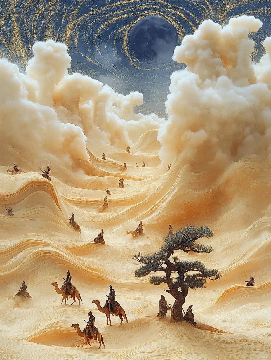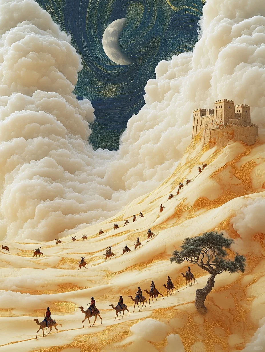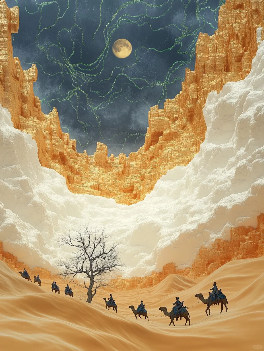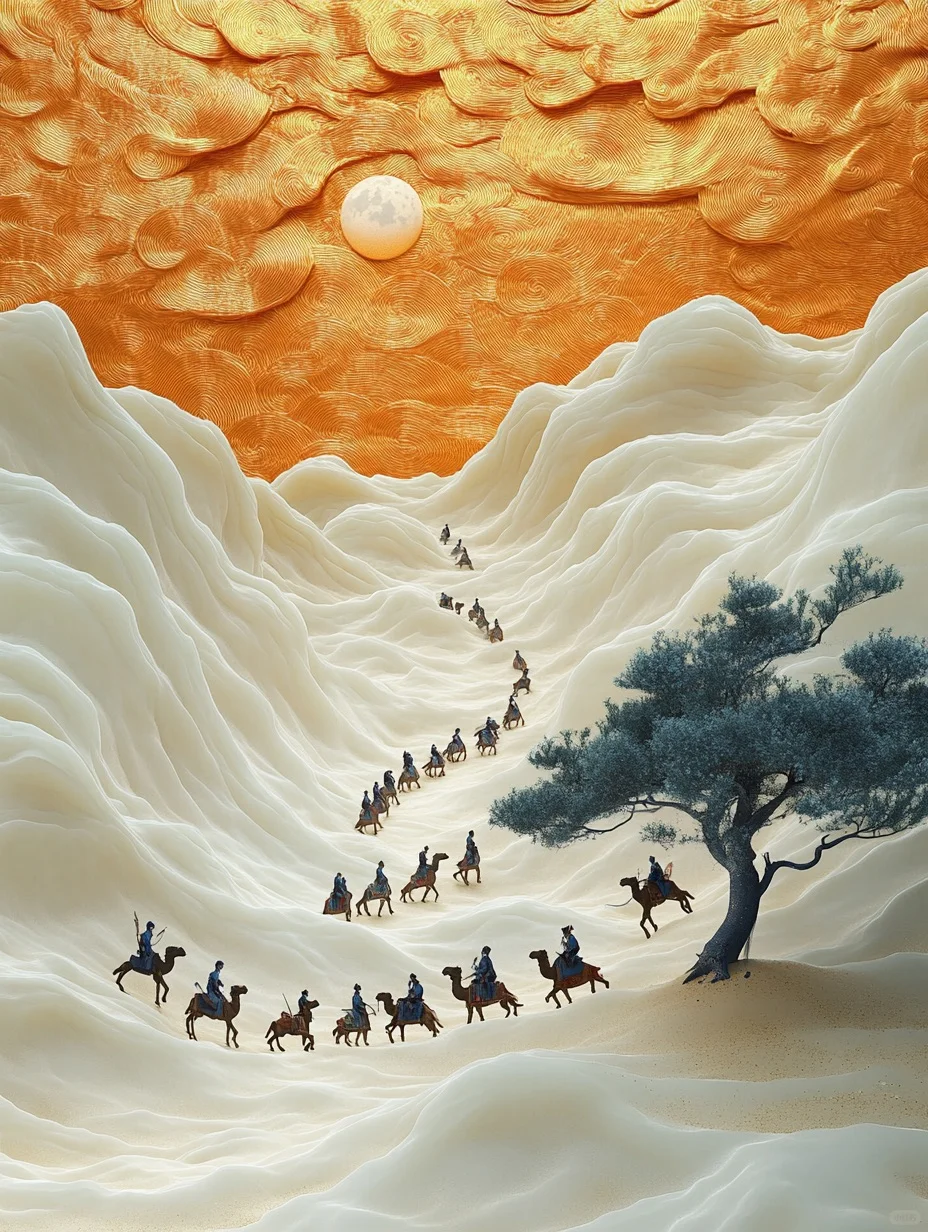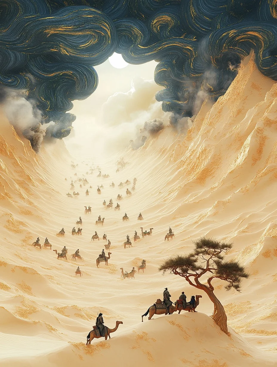 艺术画 数字艺术 新国风 绘画 中式美学 丝绸之路 魔鬼城 沙漠 冒险 东方美学