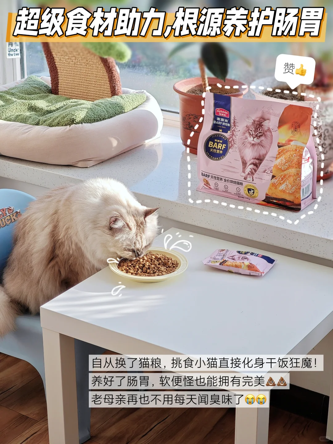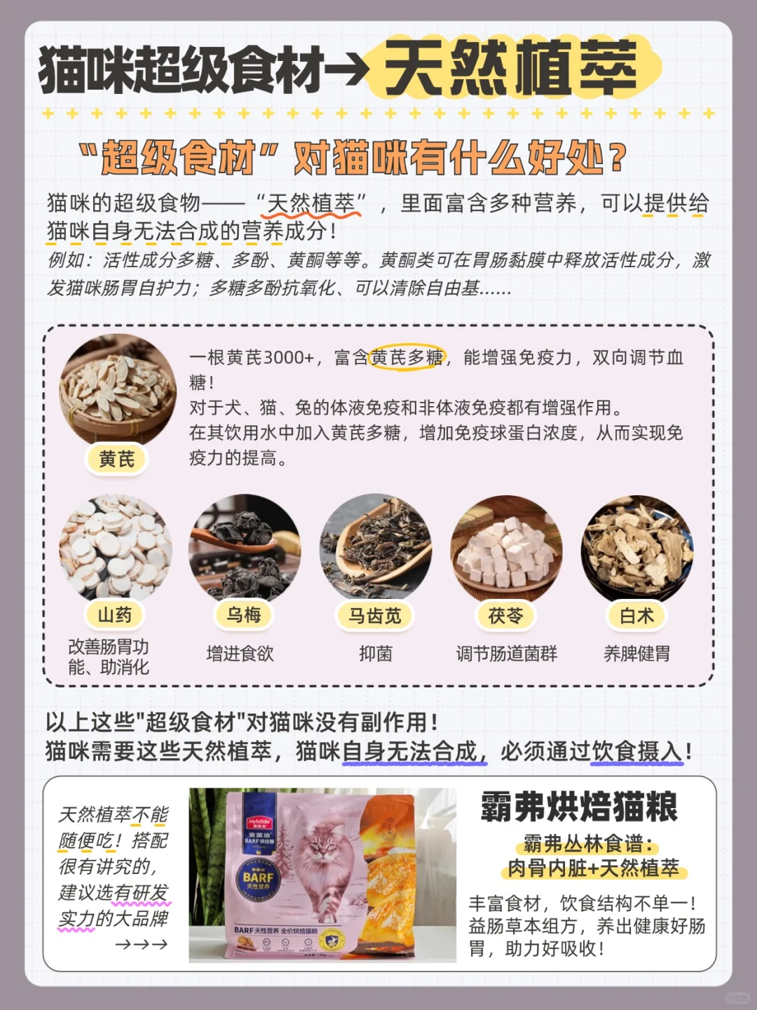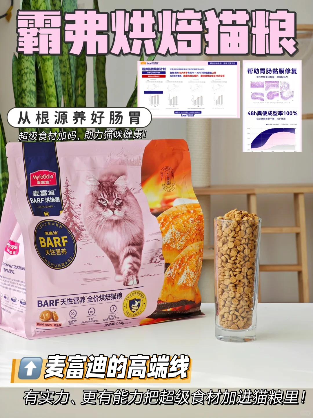 BARF霸弗烘焙猫粮,就是从6️⃣种天然草本植物中,科学萃取高活性成分,组成了益肠草本配方,🤩主打一个用超级食材,从根源上、高效的养护好猫咪的肠胃。关键他还有实验室👩🔬数据证明,[七R]天改善软便,[四R][五R]天爆改脆皮胃小猫!
