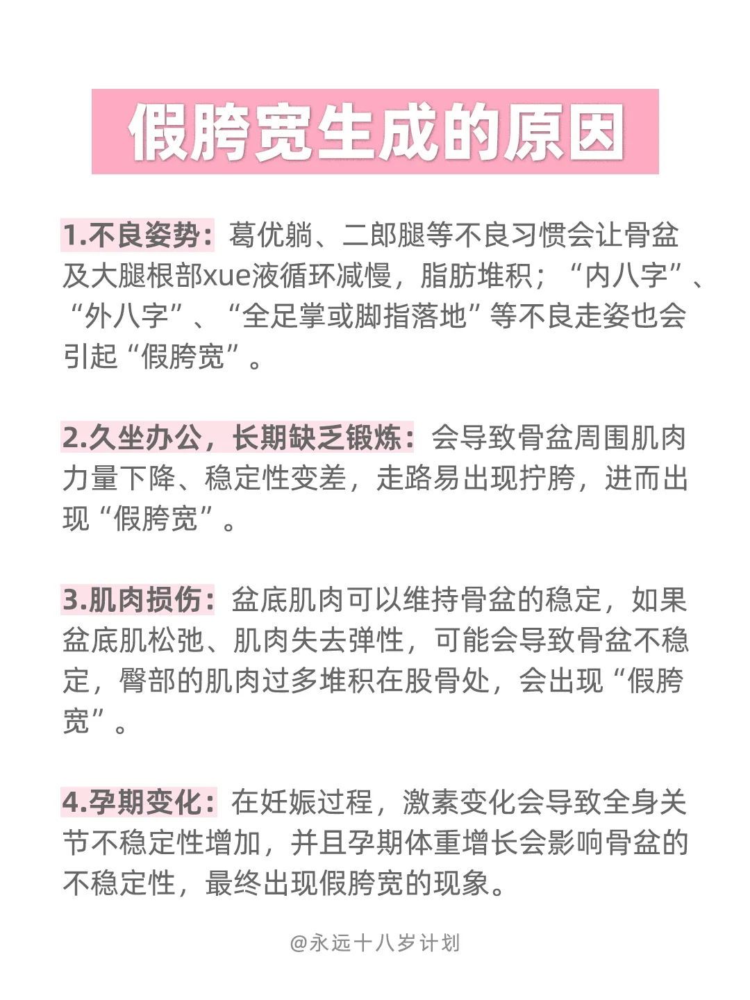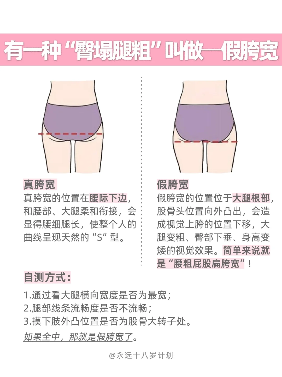 如果你是“假胯宽”那就要注意啦,时间久了可能会引起一些身体疼痛,赶紧改善起来吧~